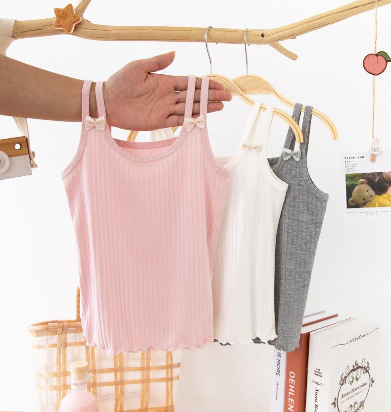 【海外からの取り寄せ】2022新作 韓国子供服 子供 キッズ キャミソール ノースリーブ リボン 通気性 フリル ピンク 下着 #[kids415_7800]【送料込み】【250706】