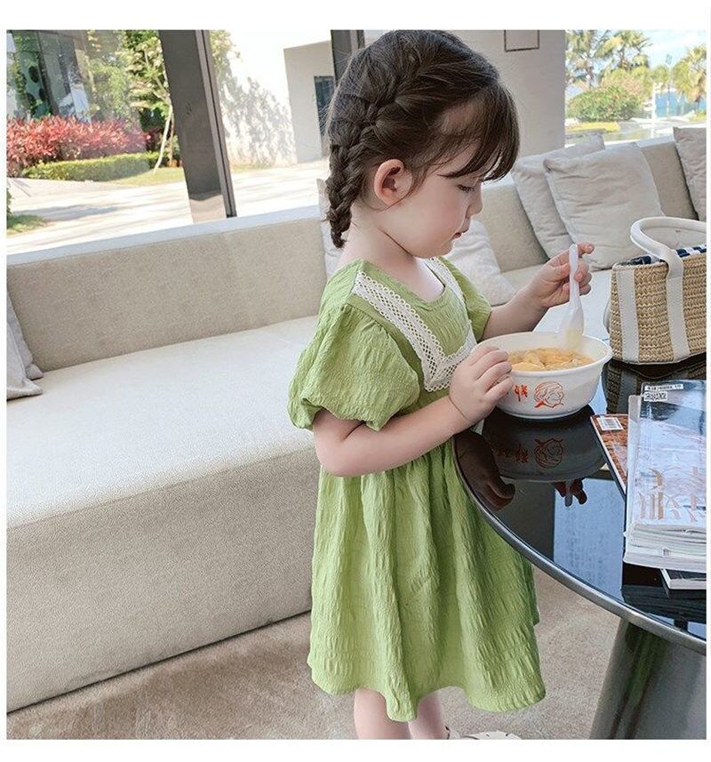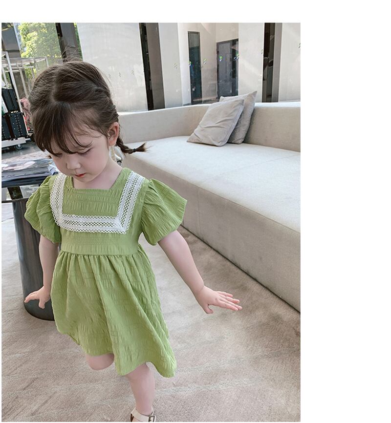 【海外からの取り寄せ】2022新作 韓国子供服 子供 キッズ 半袖 ワンピース パフスリーブ袖 かわいい グリーン フリル スカート #[kids409_12800]【送料込み】【250706】