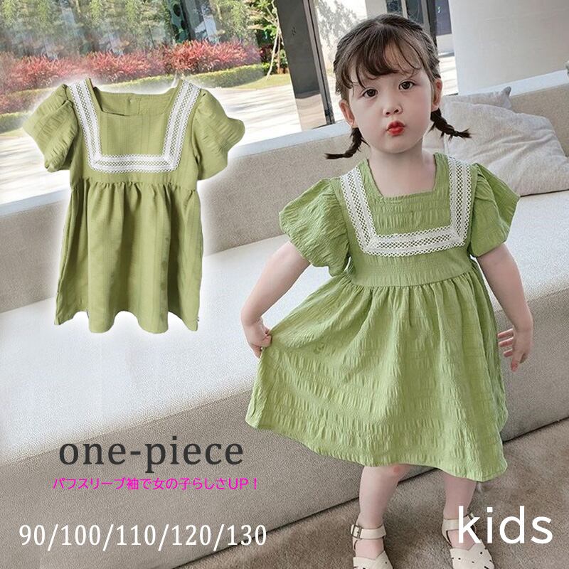 ふんわりパフ袖で女の子らしさアップ 半袖ワンピース