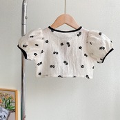 【海外からの取り寄せ】2022新作 韓国子供服 子供 キッズ 半袖 パフスリーブ袖 上下セット スカート お出かけ かわいい リボン #[kids408_13800]【送料込み】【250607】