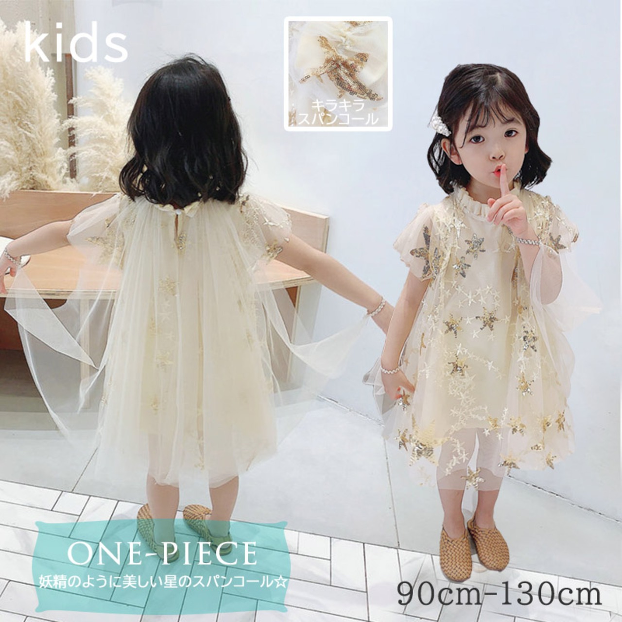 【海外からの取り寄せ】2022新作 韓国子供服 子供 キッズ 半袖 ワンピース 星 キラキラ レース ドレス スパンコール スター #[kids406_17800]【送料込み】【250706】