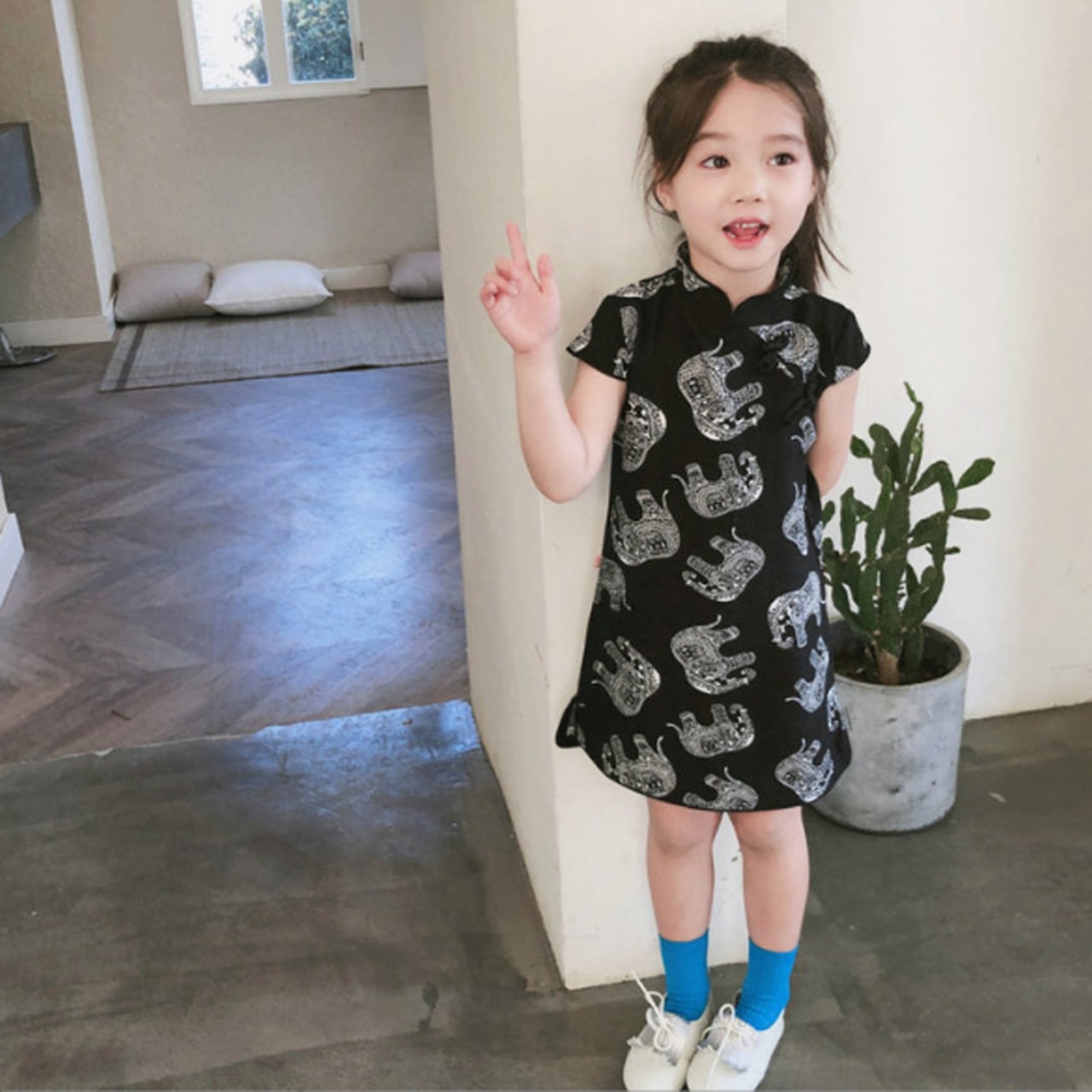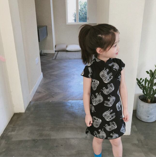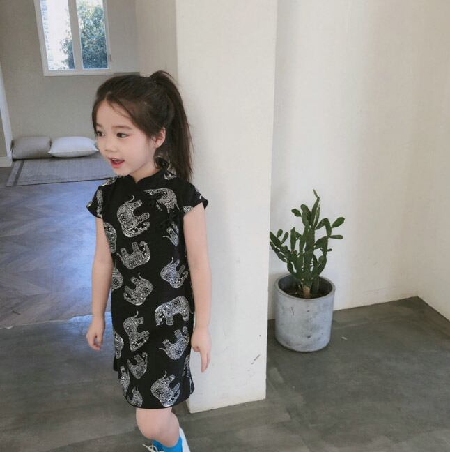 【海外からの取り寄せ】2022新作 韓国子供服 子供 キッズ 半袖 ワンピース チャイナドレス 象 アニマル エキゾチック オシャレ #[kids405_11800]【送料込み】【250706】