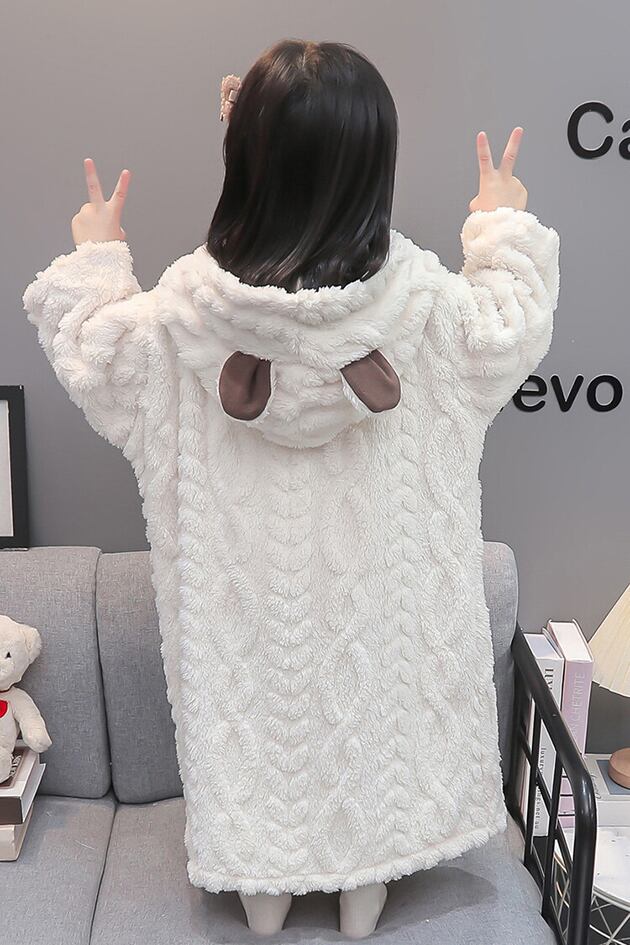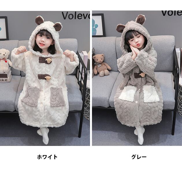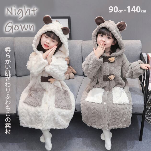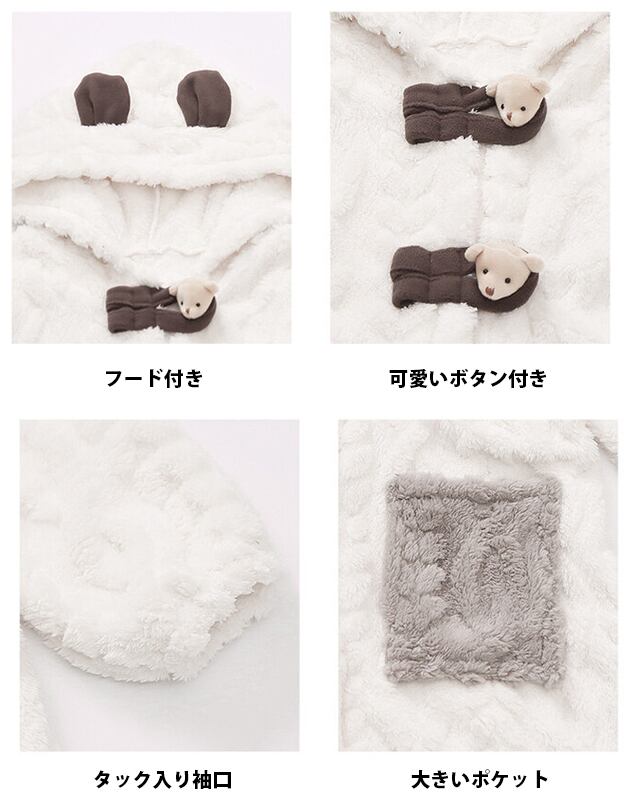 柔らかい肌ざわりふわもこの素材 フード付きナイトガウン
