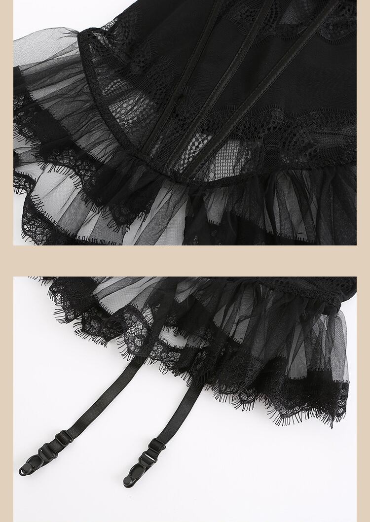 【即日発送】胸元魅惑 ガーターベルト付きビスチェとショーツ セクシーランジェリー【 #[7407_18000]】【送料込み】【250921】