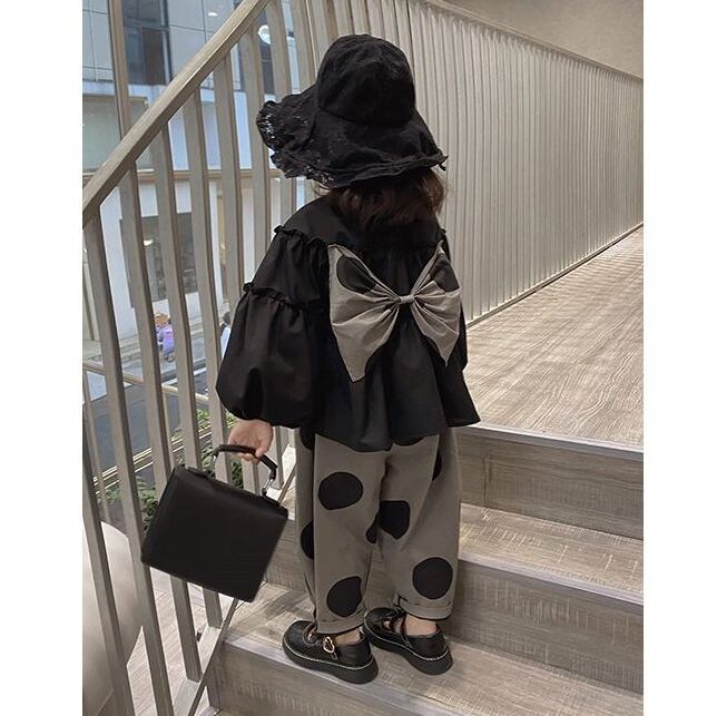 【海外からの取り寄せ】新作2022 韓国子供服 女の子 キッズ 長袖 トップス ボリューム袖 ワイドパンツ リボン 水玉 セットアップ #[kids372_14800]【送料込み】【250508】