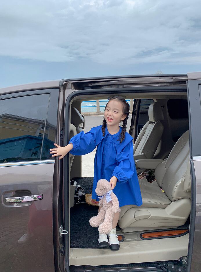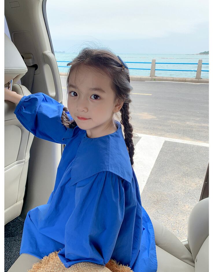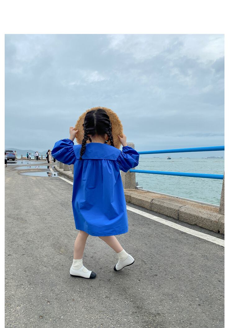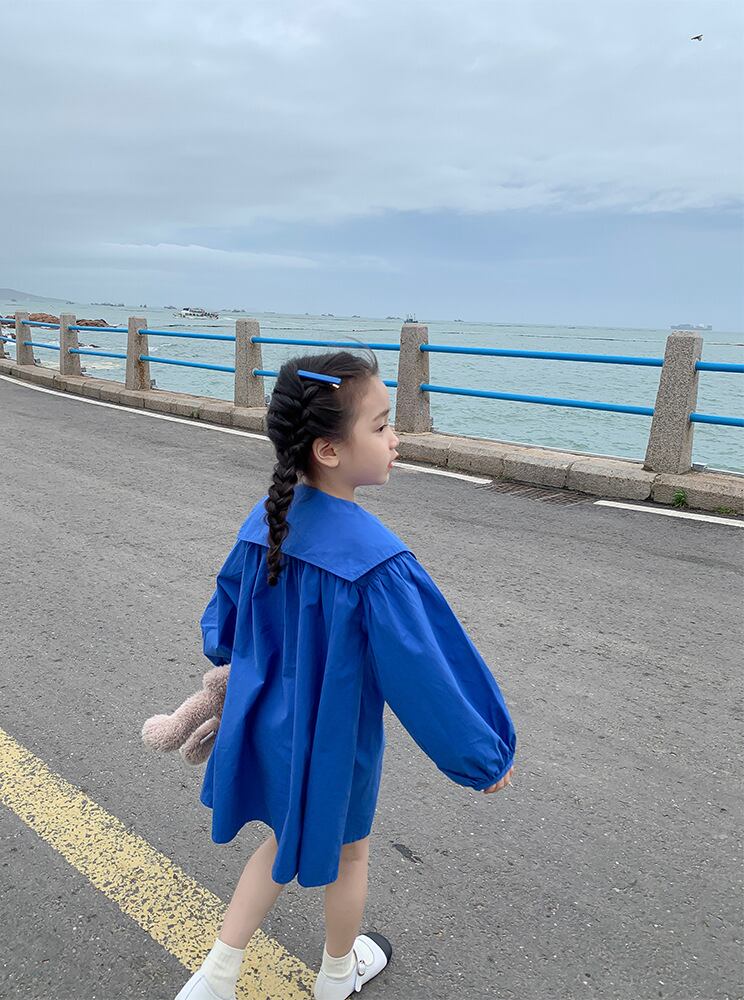 【海外からの取り寄せ】2022新作 韓国子供服 女の子 キッズ ワンピース 青 ブルー 大きめ襟 襟つき かわいい パフスリーブ #[kids359_12800]【送料込み】【250706】