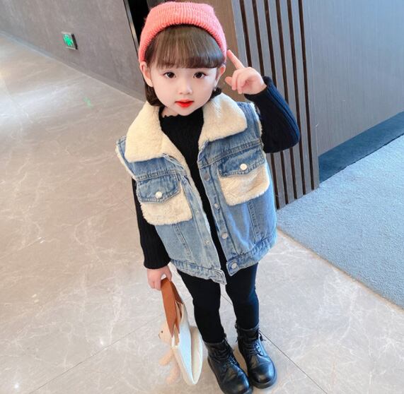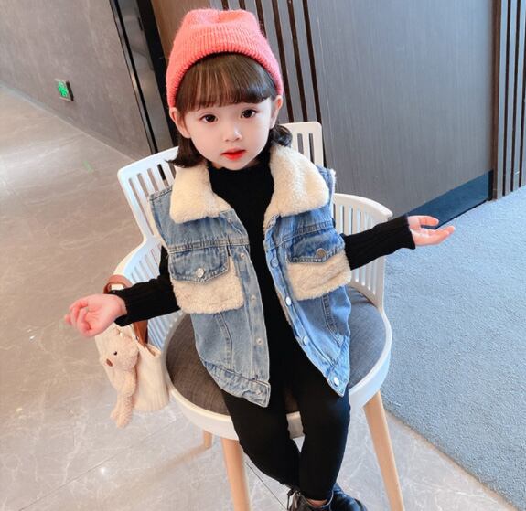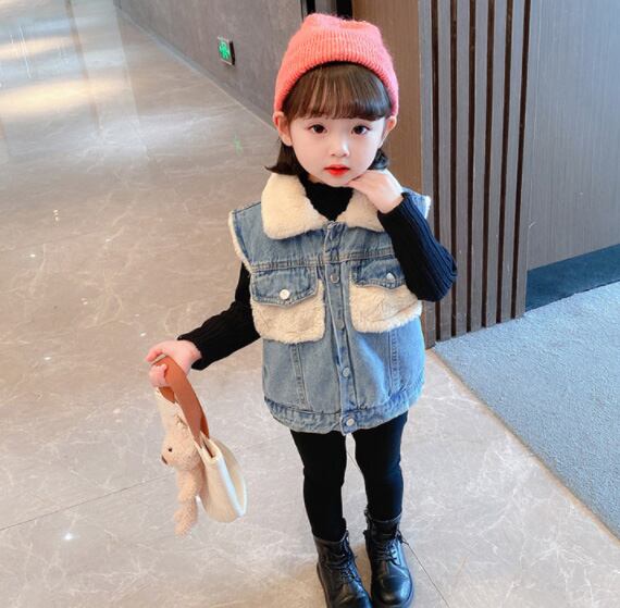 【海外からの取り寄せ】2021秋冬新作 韓国風 子供服 男の子 女の子 キッズ アウター デニム風 ベスト もこもこ あったか #[kids345_12800]【送料込み】【250923】