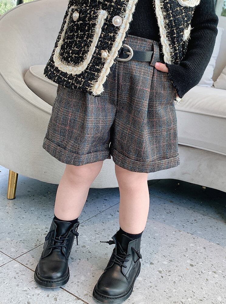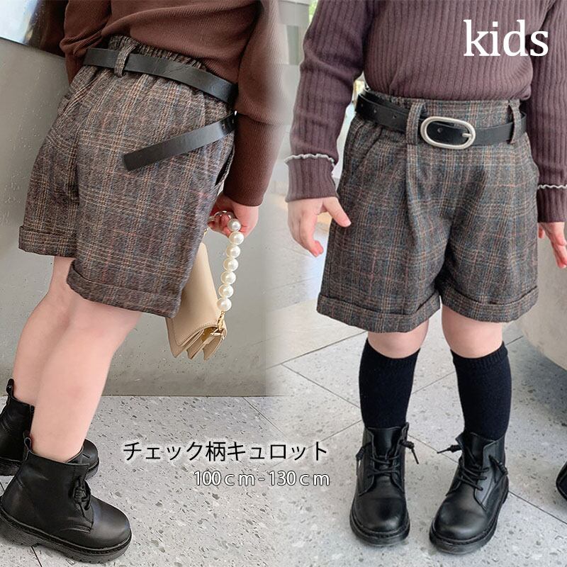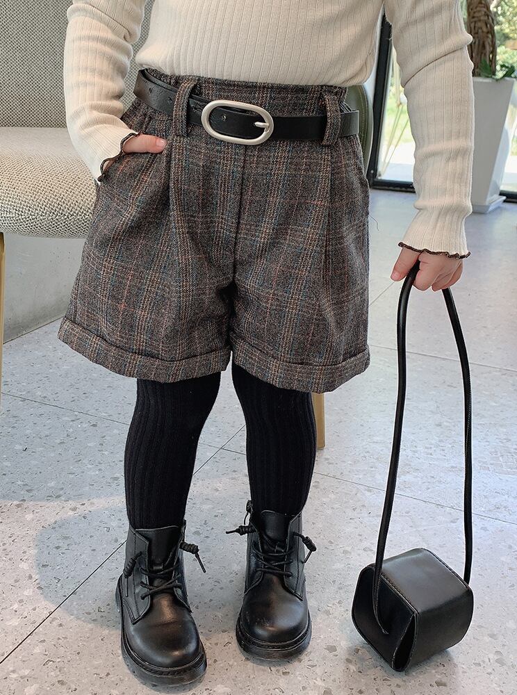 【海外からの取り寄せ】2021秋冬新作 韓国風 子供服 女の子 可愛い キッズ ベルト キュロット ショートパンツ チェック柄 #[kids343_11800]【送料込み】【250330】