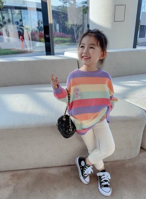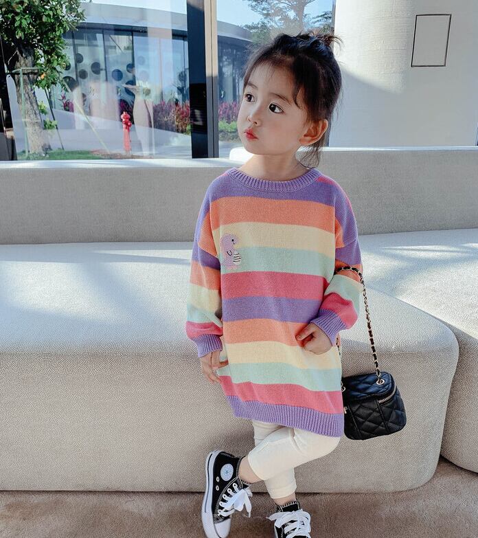 【海外からの取り寄せ】2021秋冬新作 韓国風 子供服 女の子 キッズ トップス 恐竜 ボーダー柄 パステルカラー #[kids335_13800]【送料込み】【250508】