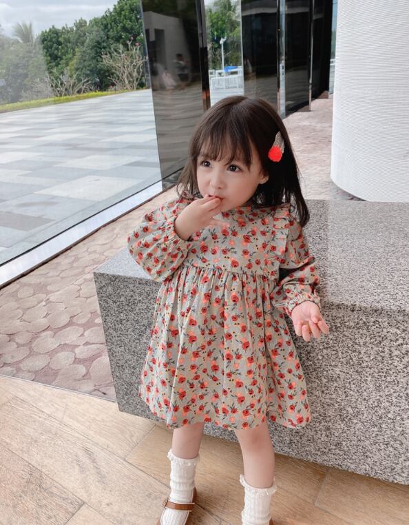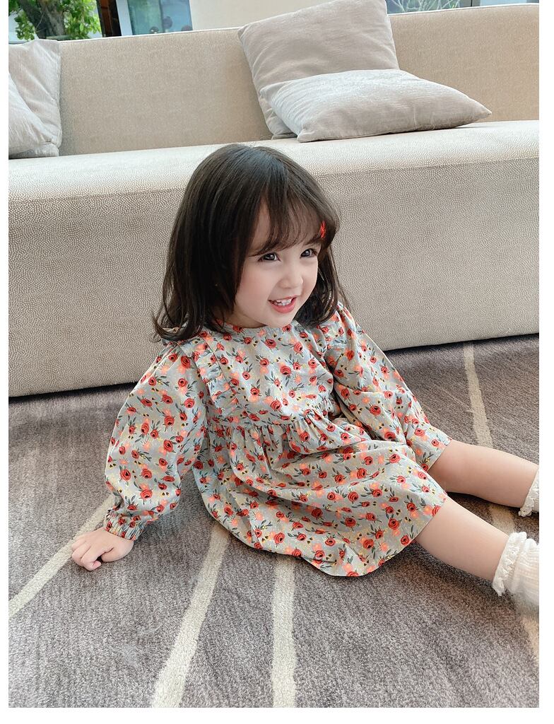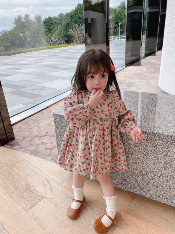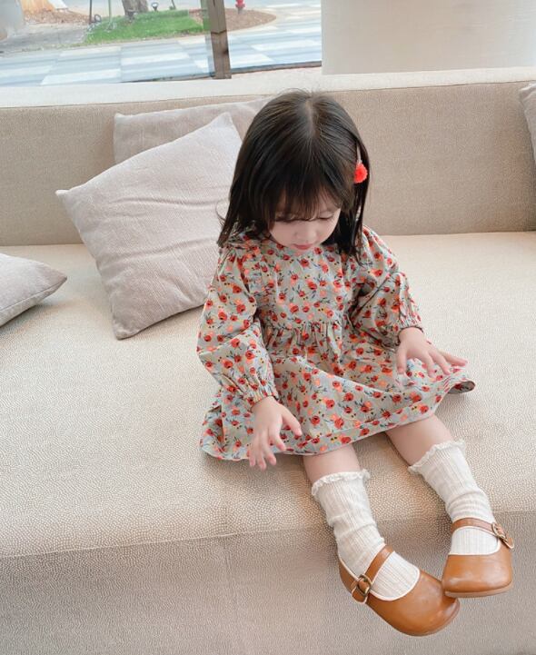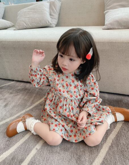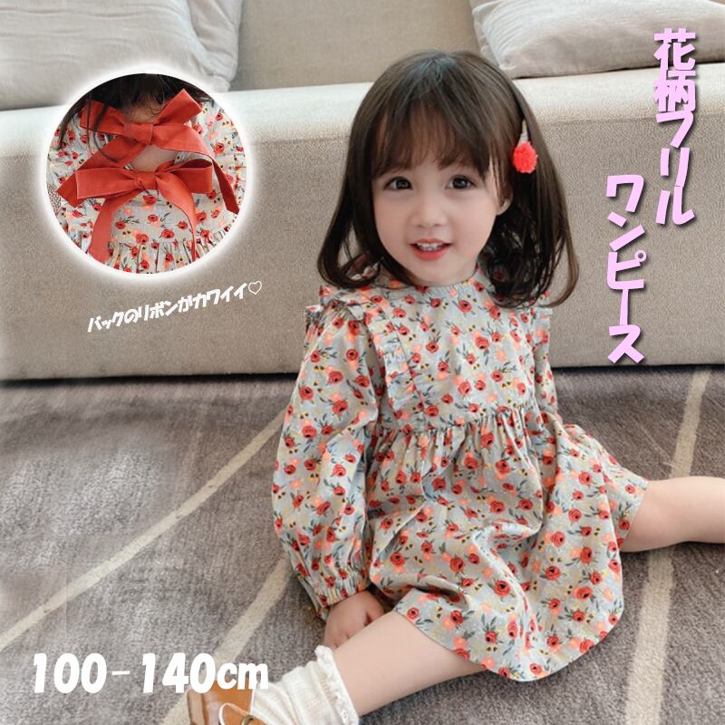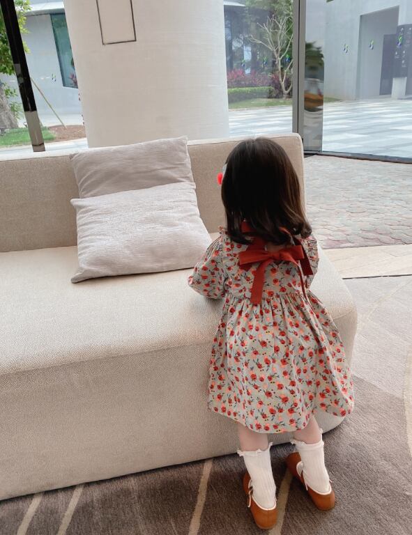 【海外からの取り寄せ】2021秋冬新作 韓国風 子供服 女の子 可愛い キッズ 花柄 フリルワンピ バックリボン 長袖 #[kids320_11800]【送料込み】【250330】