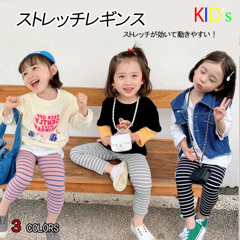 【海外からの取り寄せ】2021秋冬新作 韓国風 子供服 女の子 可愛いキッズ ストライプ ボーダー レギンス スパッツ 伸縮性 #[kids311_7800]【送料込み】【250330】