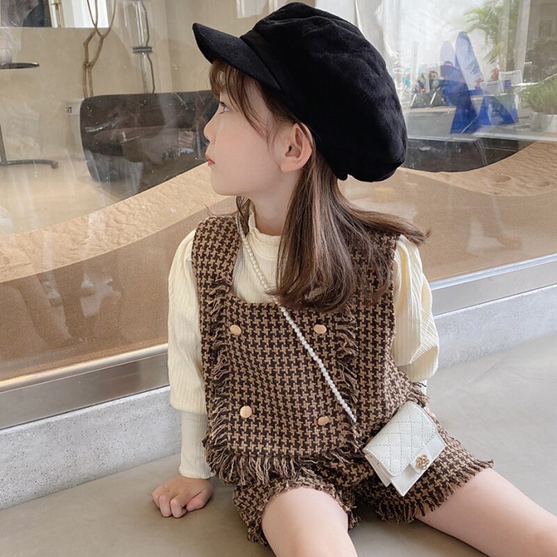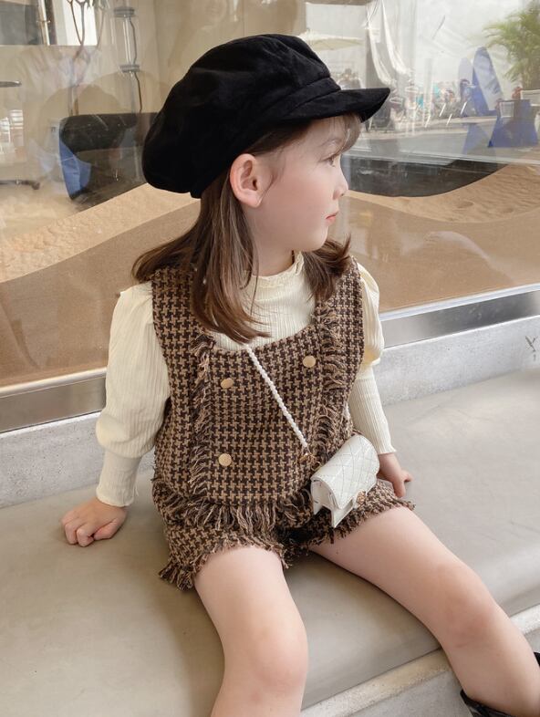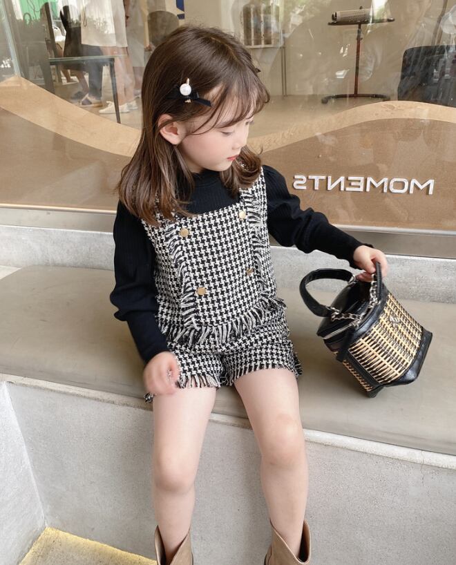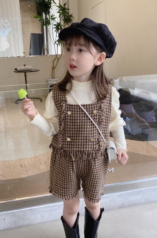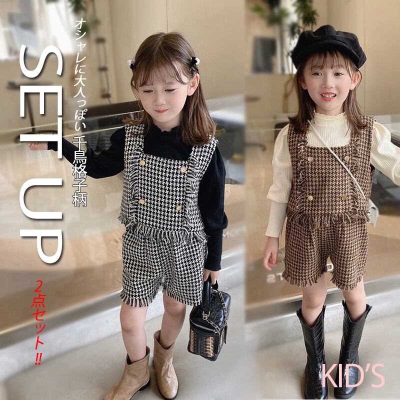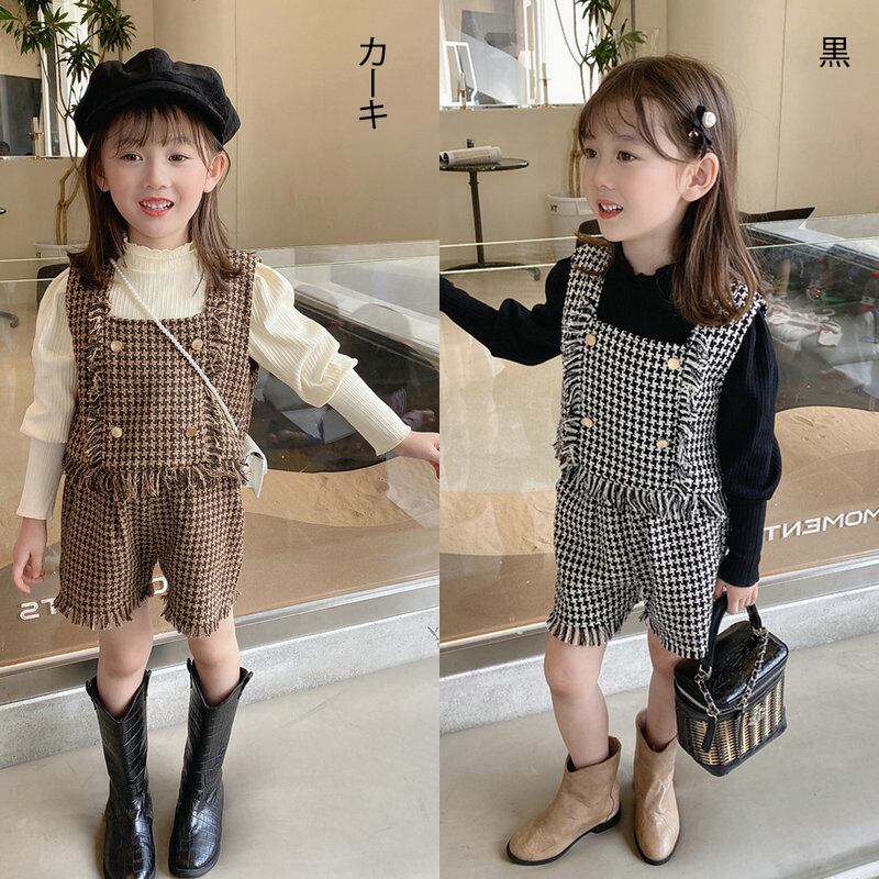 【海外からの取り寄せ】2021秋冬新作 韓国風 子供服 女の子 可愛いキッズ 千鳥格子柄 セットアップ 2点セット パンツ トップス #[kids310_15800]【送料込み】【250508】