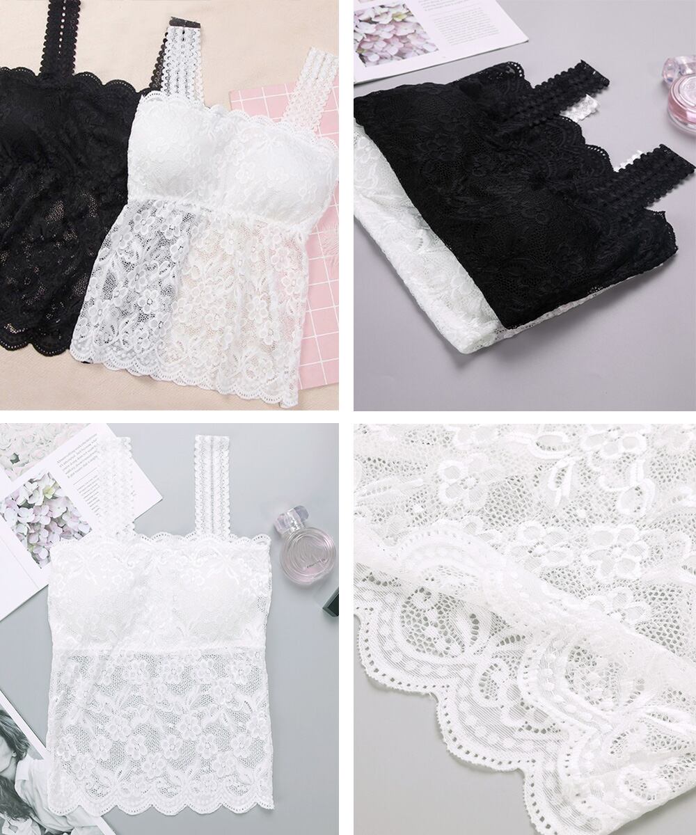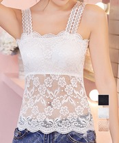 繊細なフラワーレースが上品な印象を与えるパッド付きキャミソール