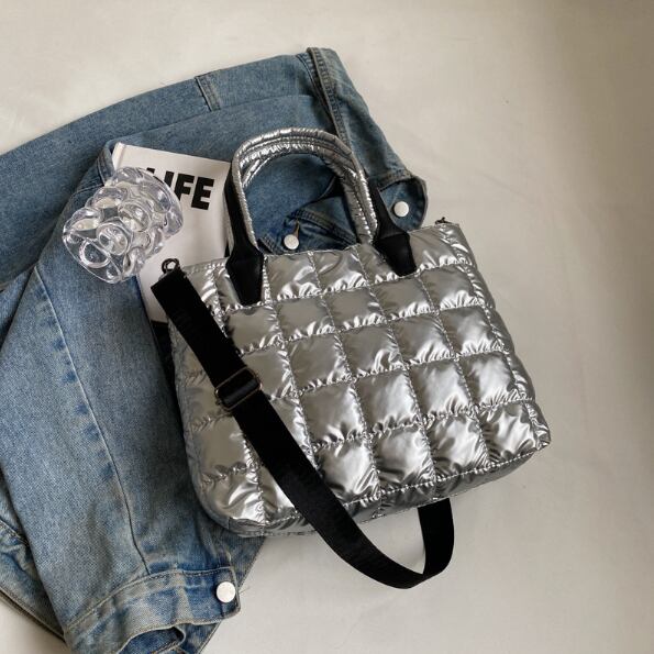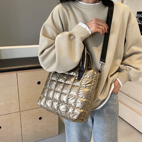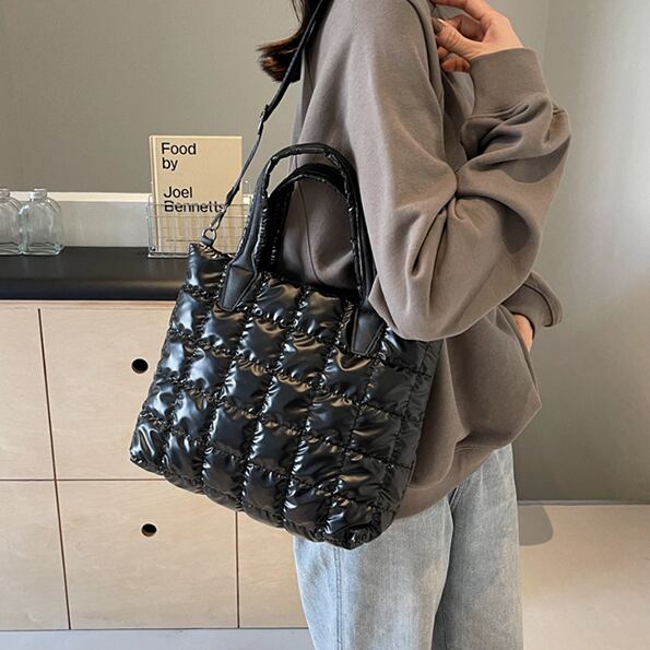 【海外からの取り寄せ】 レディース ショルダーバッグ トート キルティング キルト ソフト 軽い 黒 シルバー 軽量 #[bag1602_8900]【送料込み】【250509】