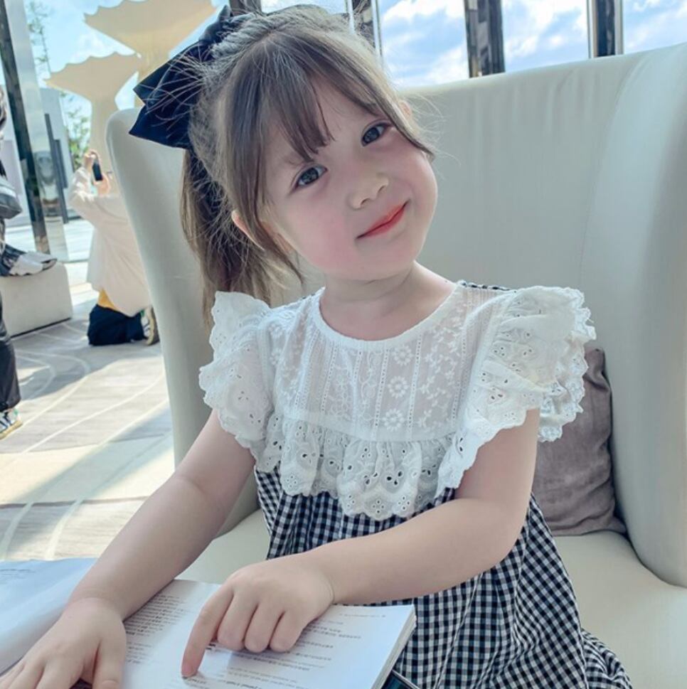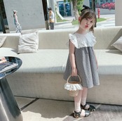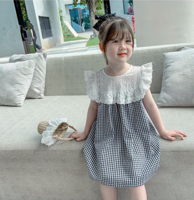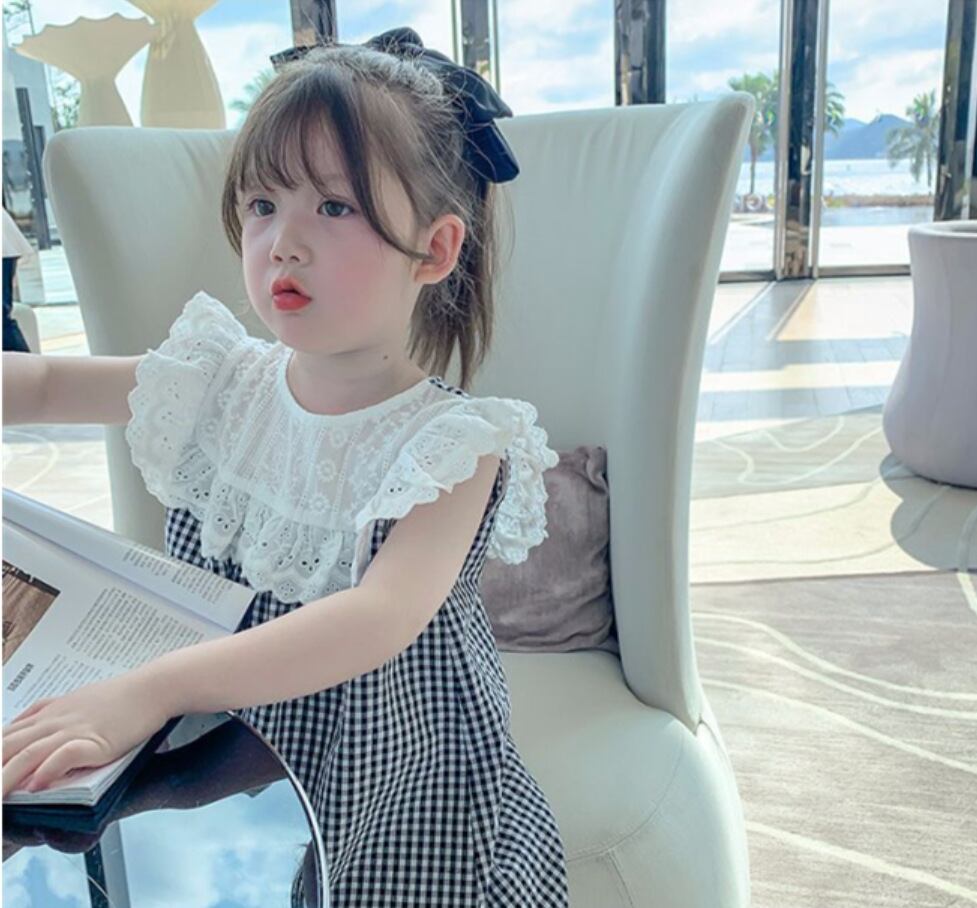 【海外からの取り寄せ】2021春夏新作 韓国風 子供服 女の子 可愛いキッズ ギンガムチェック フリル ワンピース レース #[kids269_12800]【送料込み】【250408】
