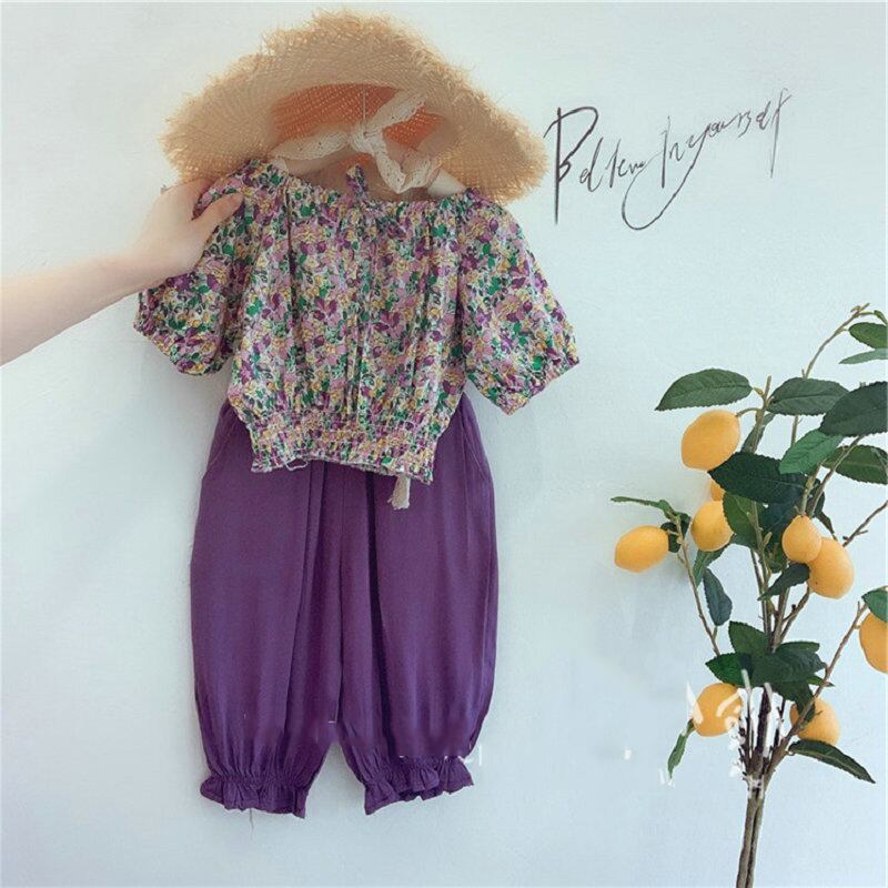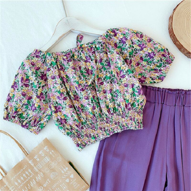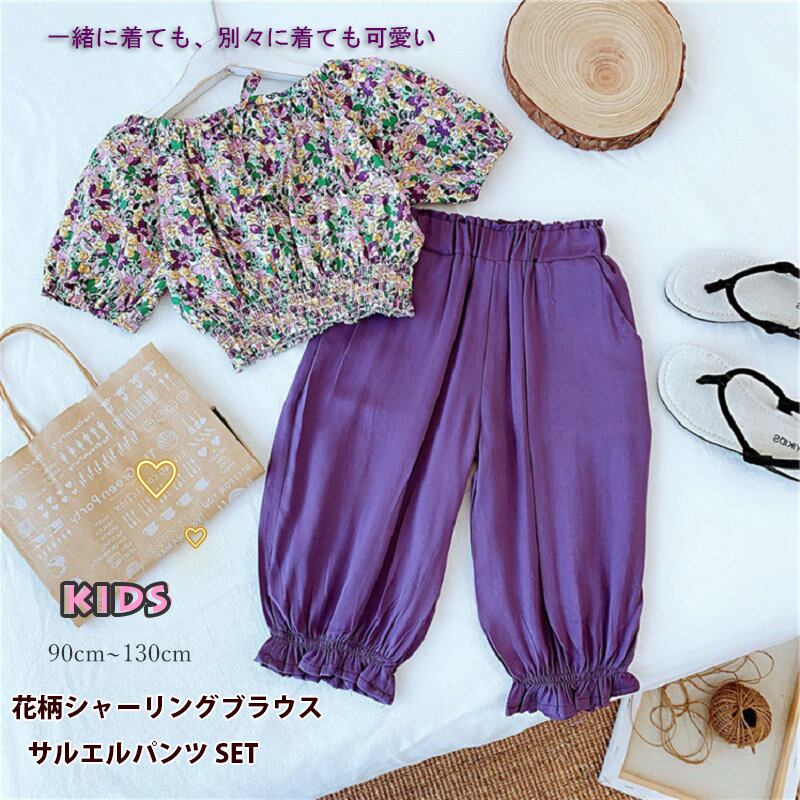 【海外からの取り寄せ】2021春夏新作 韓国風 子供服 女の子 可愛いキッズ 花柄シャーリングブラウス サルエルパンツ ツーピース #[kids255_14800]【送料込み】【250408】
