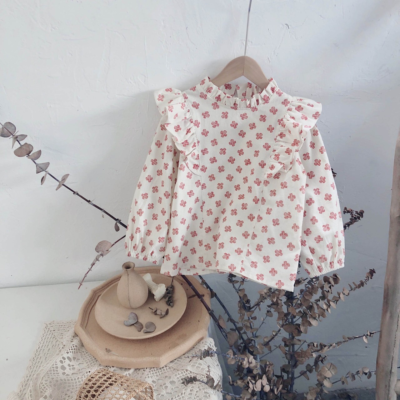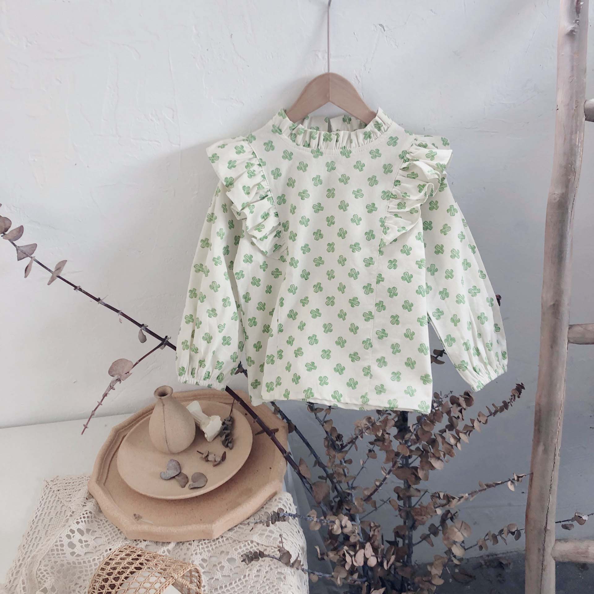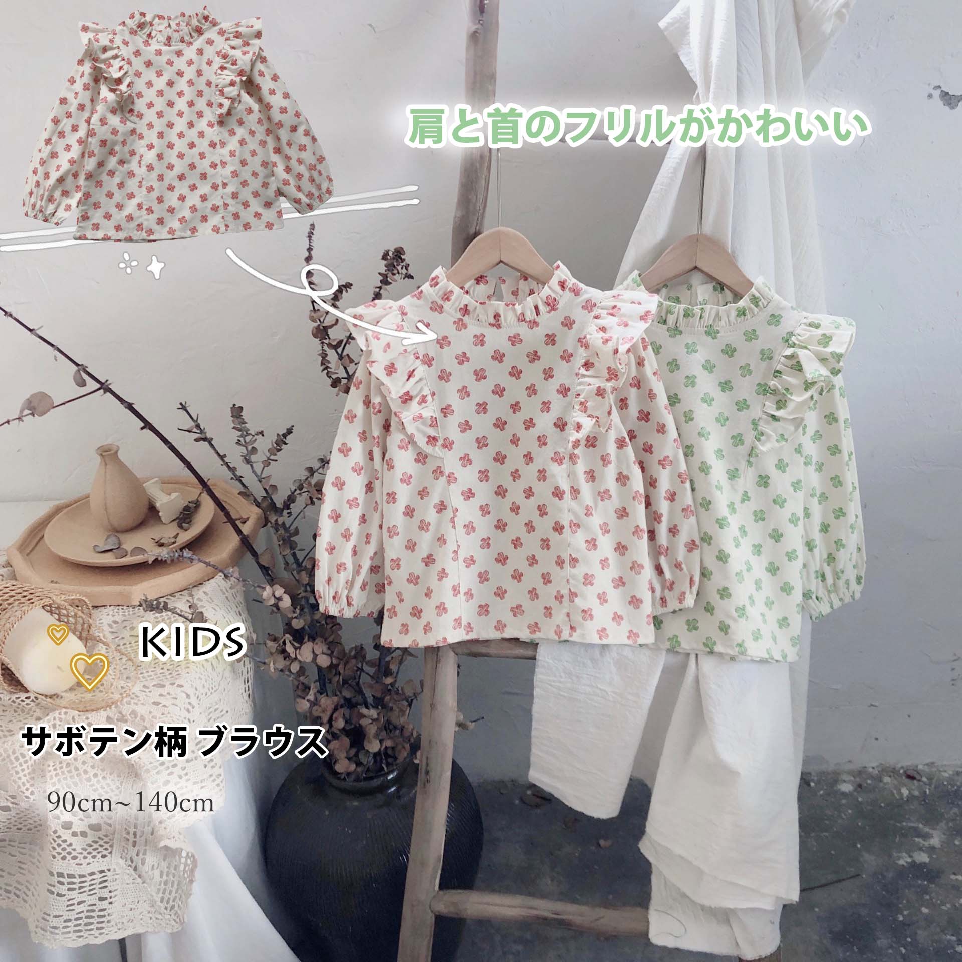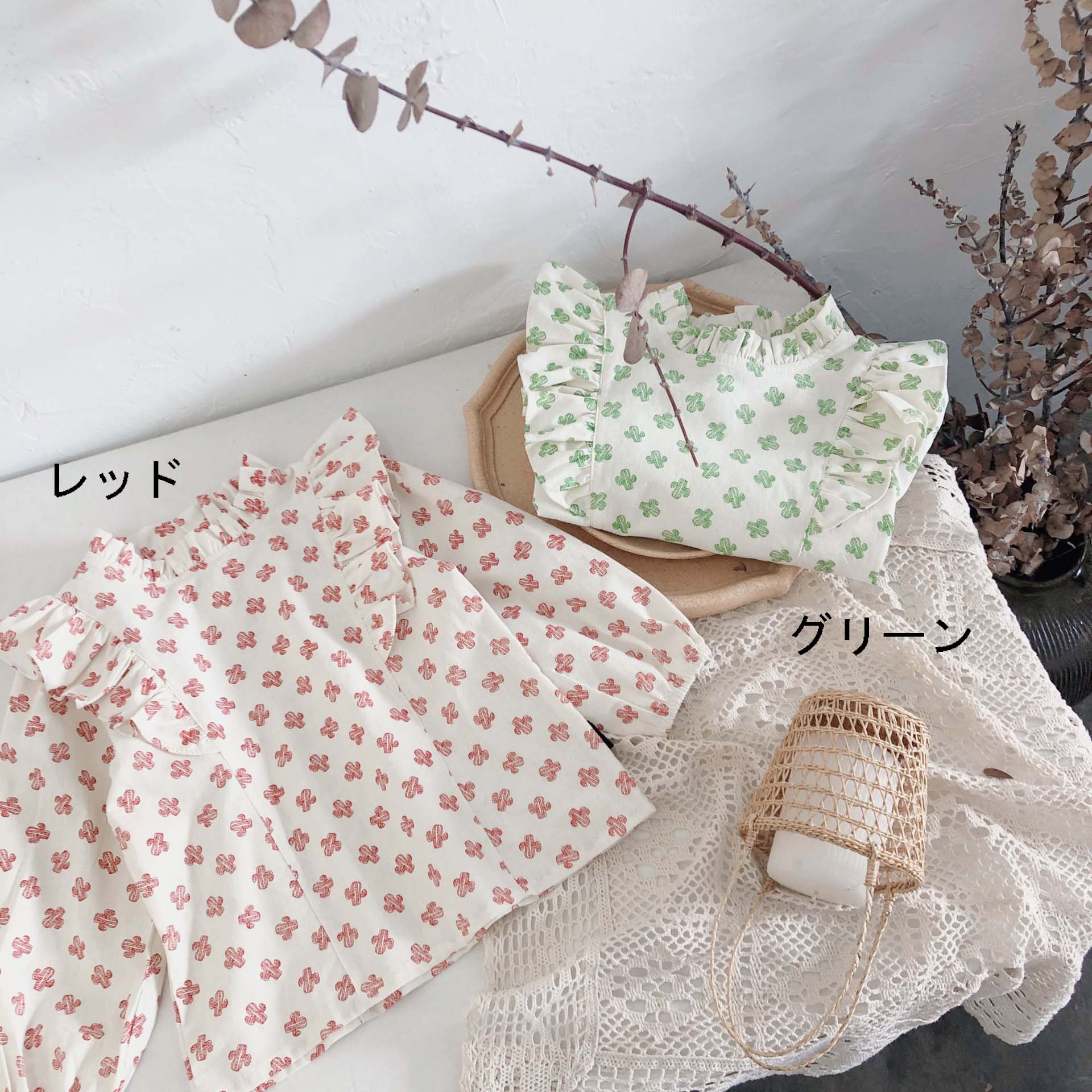 【海外からの取り寄せ】2021春夏新作 韓国風 子供服 女の子 可愛いキッズ ブラウス フリル袖 サボテン柄 フリルネック #[kids242_11800]【送料込み】【250408】