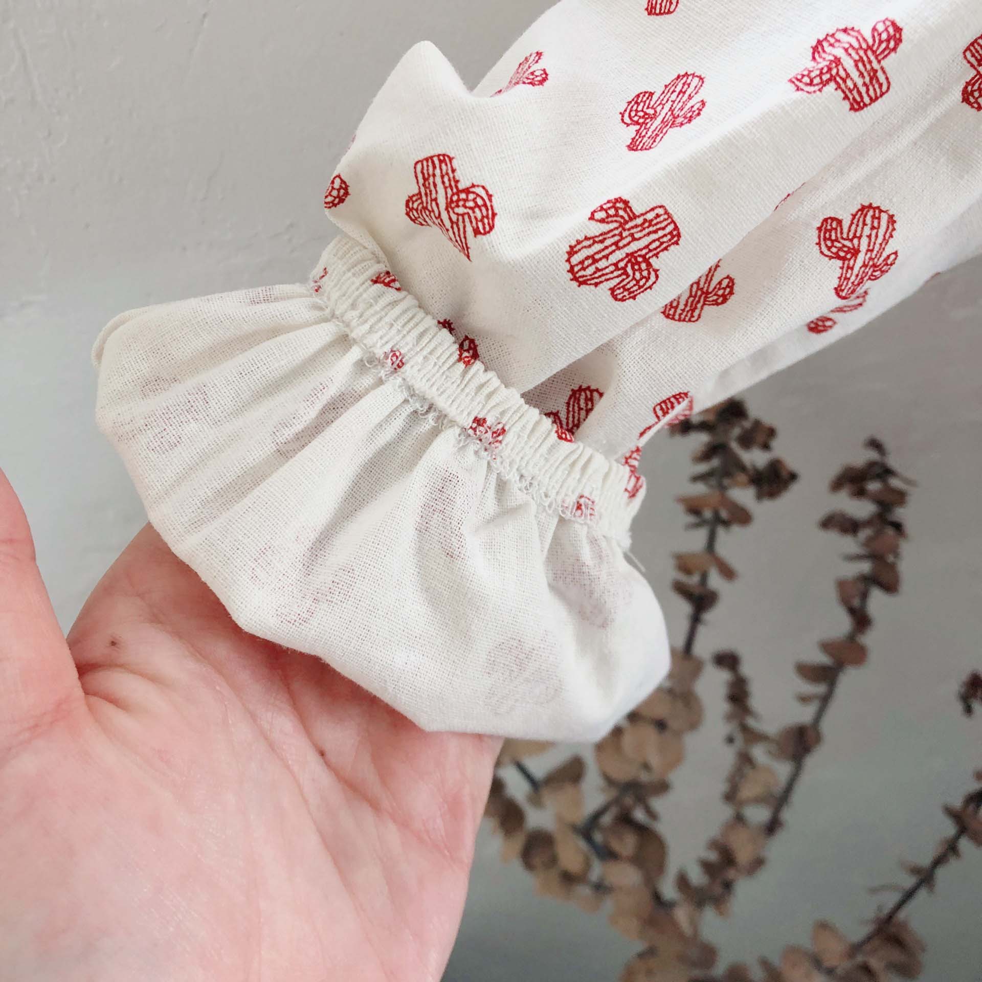 肩と首のフリルがかわいいフ サボテン柄ブラウス