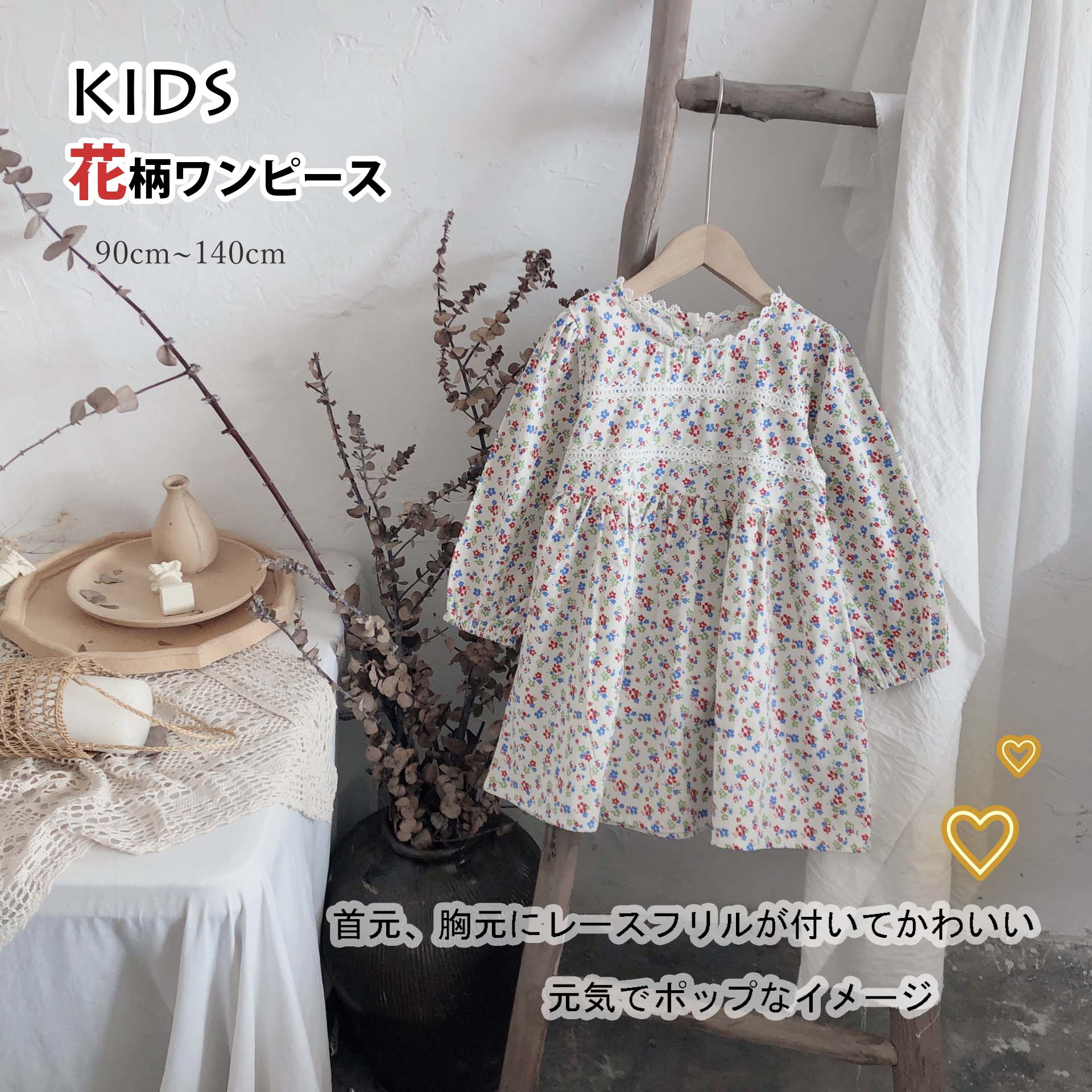 【海外からの取り寄せ】2021春夏新作 韓国風 子供服 女の子 可愛いキッズ 花柄 ワンピース 長袖 シャーリング フリル #[kids241_10800]【送料込み】【250408】