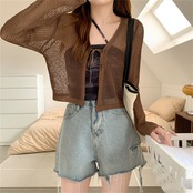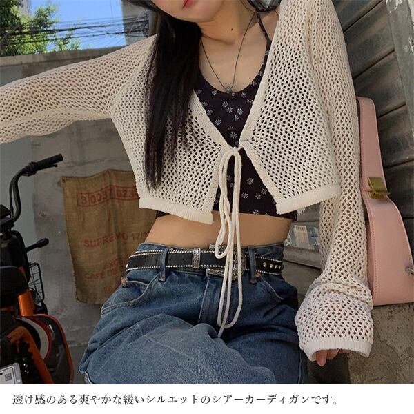 【海外からの取り寄せ】2023新作 レディース シアー透け感 カーディガン トップスオーバーサイズ サマーニット 透かし編み #[cardigan107_9800]【送料込み】【250712】