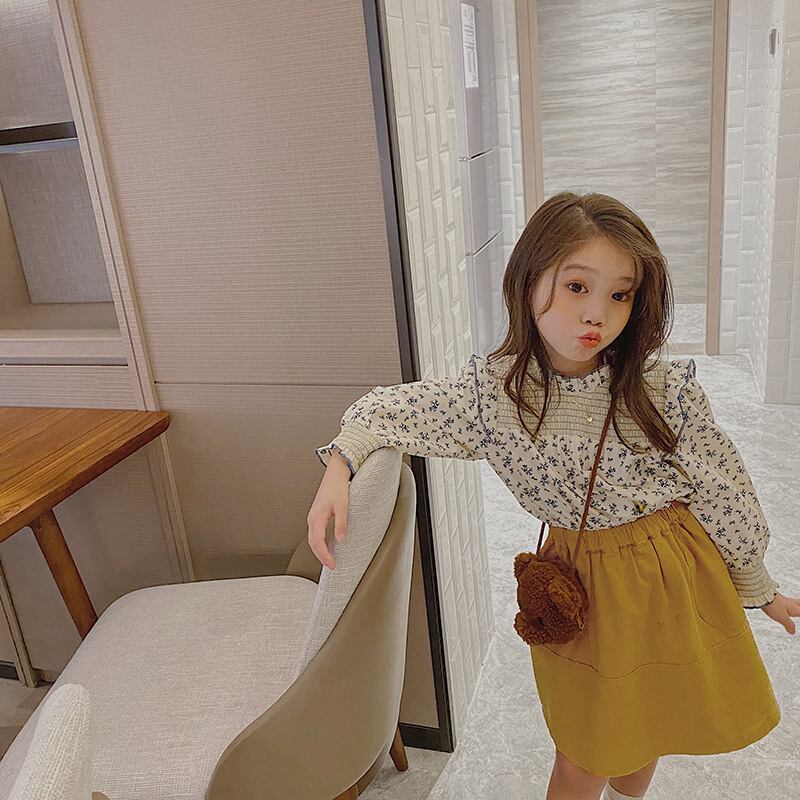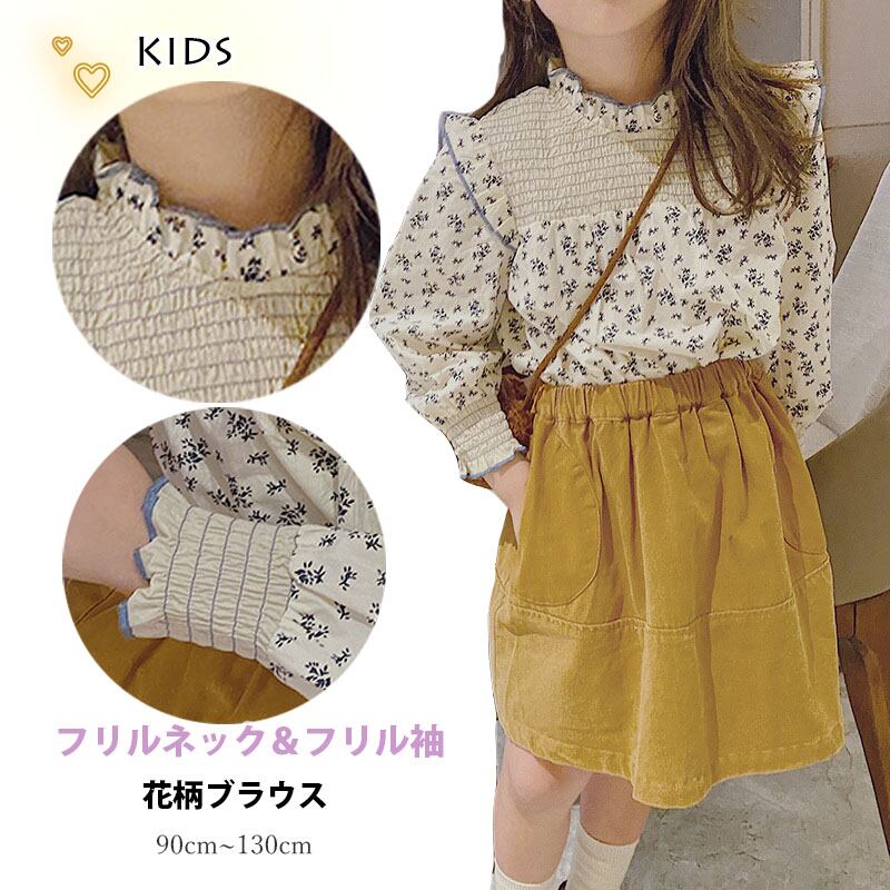 【海外からの取り寄せ】2021春夏新作 韓国風 子供服 女の子 可愛いキッズ シャーリングブラウス 花柄 フリルネック #[kids228_11800]【送料込み】【250408】