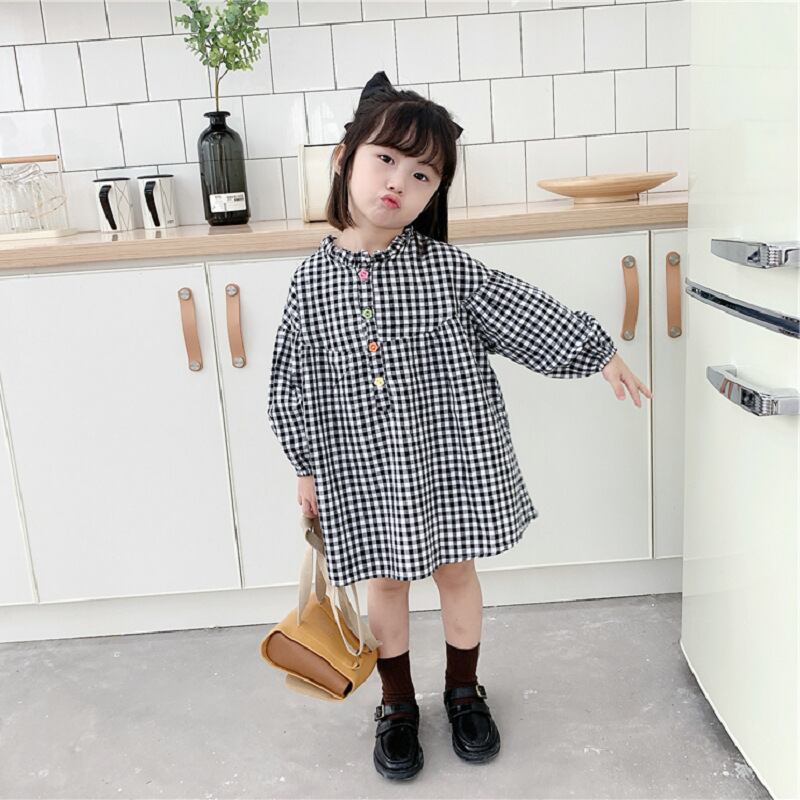 【海外からの取り寄せ】2021春夏新作 韓国風 子供服 女の子 可愛いキッズ ギンガムチェック柄 ネックフリル コットンワンピ #[kids219_11800]【送料込み】【250327】