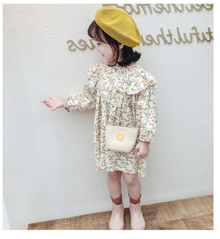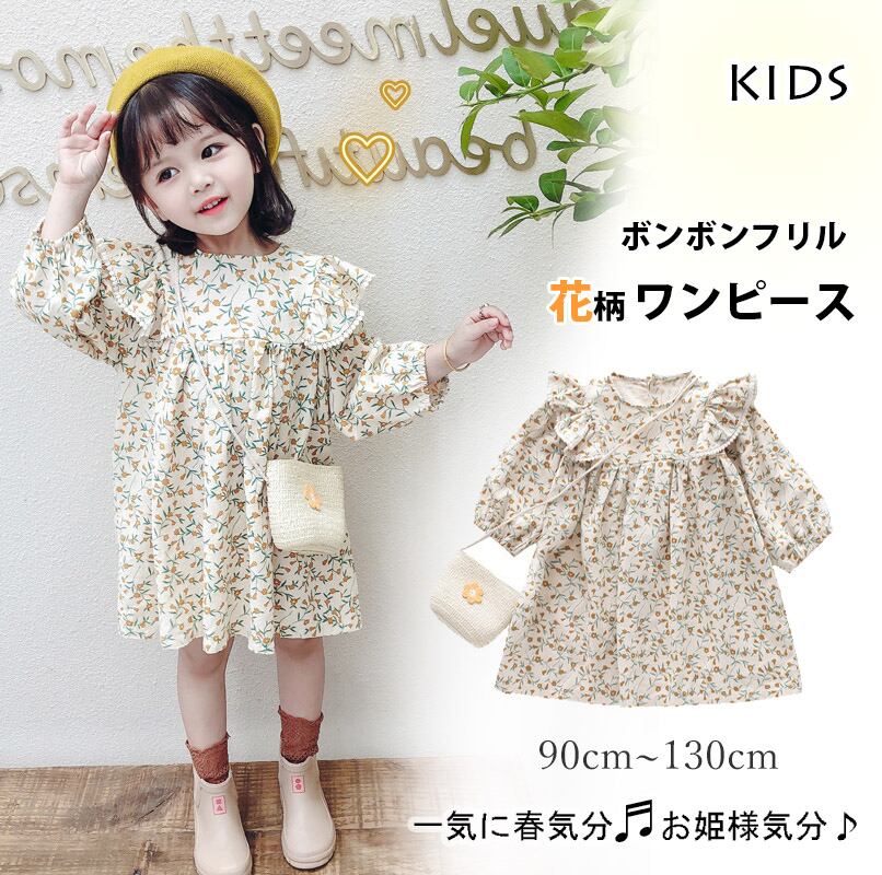 【海外からの取り寄せ】2021春夏新作 韓国風 子供服 女の子 可愛いキッズ 花柄 ボンボンフリル ワンピース ドレス #[kids212_12800]【送料込み】【250327】