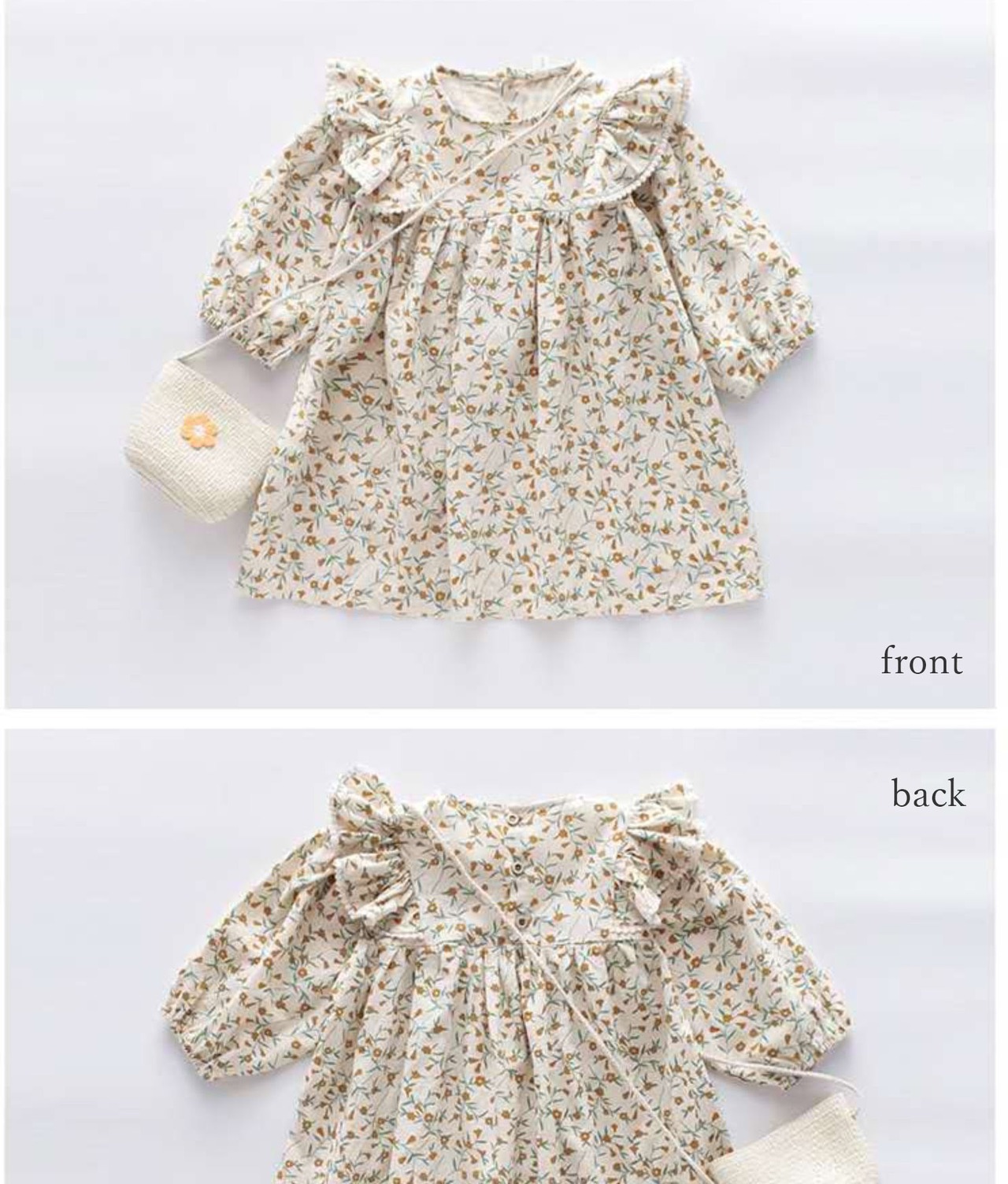 ボンボンフリルがキュート ふんわり花柄ワンピース
