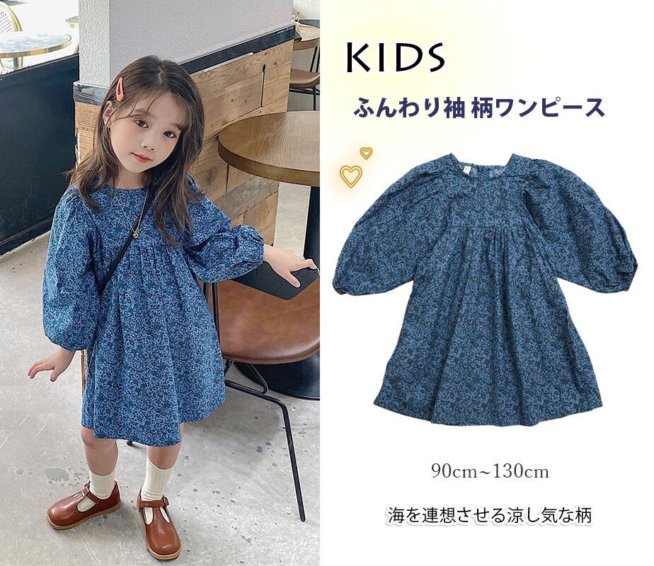 【海外からの取り寄せ】2021春夏新作 韓国風 子供服 女の子 可愛いキッズ 柄 ふんわり袖 ワンピース 長袖 ドレス #[kids206_11800]【送料込み】【250327】