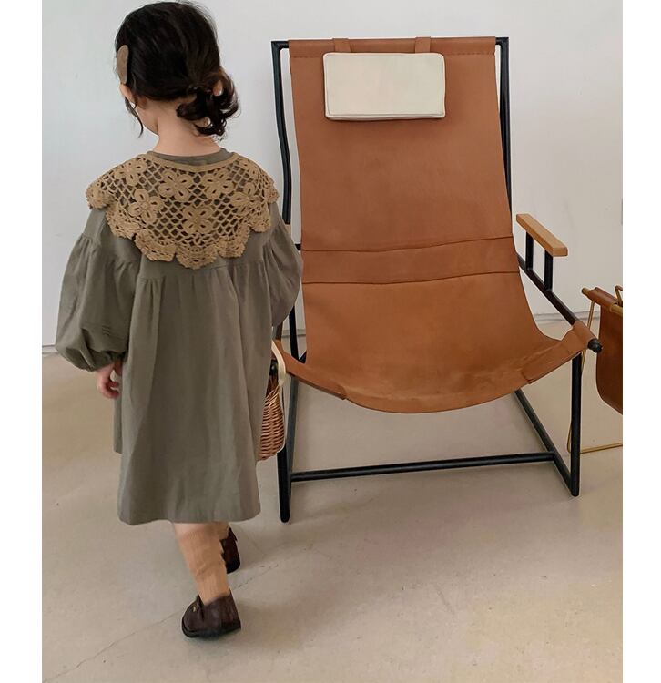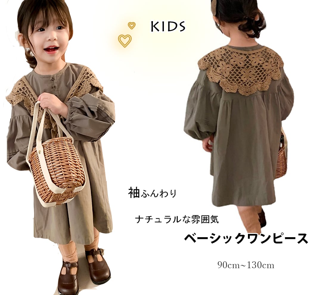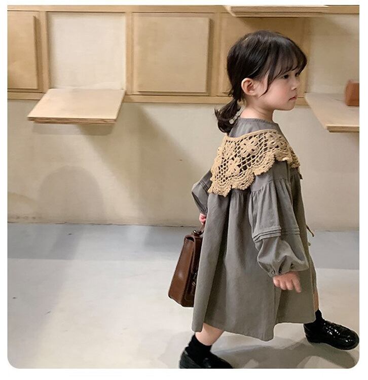 【海外からの取り寄せ】2021春夏新作 韓国風 子供服 女の子 可愛いキッズ 無地 ベーシック ワンピース レース編みショール 長袖 #[kids202_9900]【送料込み】【250327】