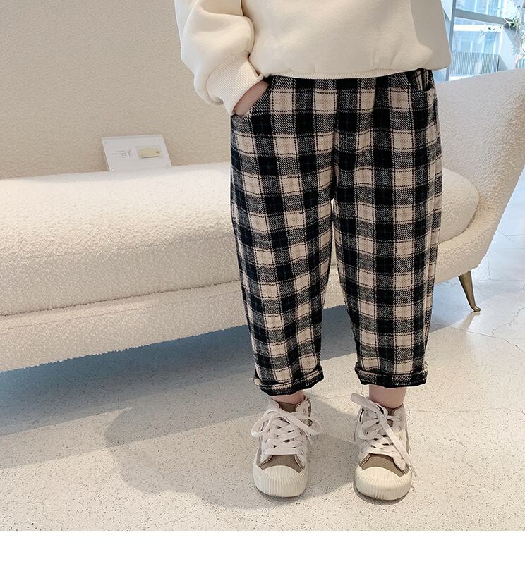 【海外からの取り寄せ】2020秋冬新作 韓国風 子供服 女の子 男の子 可愛いキッズ チェック柄 パンツ 楽ちん 着回し 裏起毛 #[kids189_10800]【送料込み】【250327】