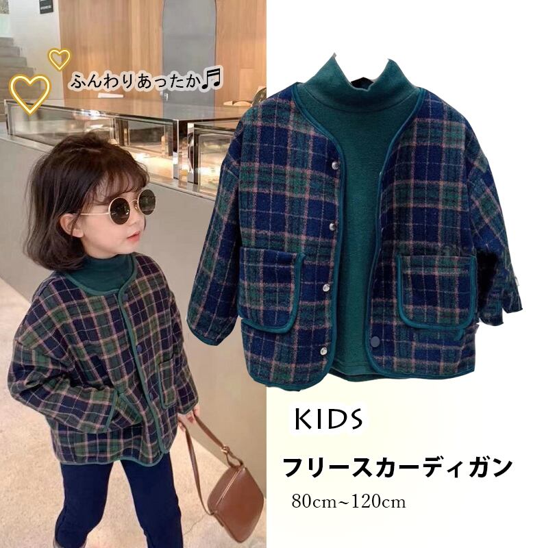 【海外からの取り寄せ】2020秋冬新作 韓国風 子供服 女の子 キッズ カーディガン フリース チェック柄 #[kids174_14800]【送料込み】【250415】