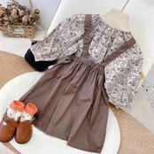 【海外からの取り寄せ】2020秋新作 韓国風 子供服 女の子 可愛いキッズ 花柄 コットンブラウス ワンピース 2点セット #[kids172_14800]【送料込み】【250415】