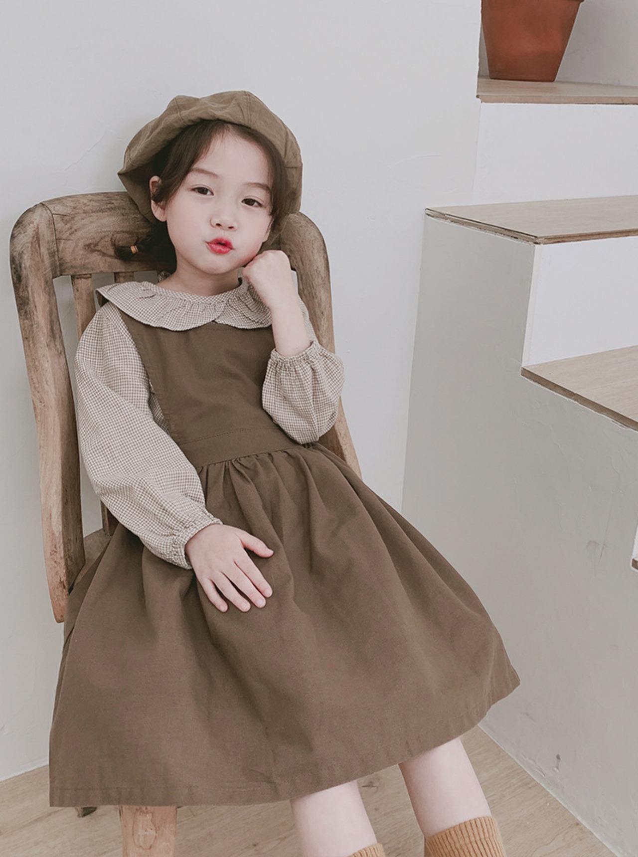 【海外からの取り寄せ】2020秋新作 韓国風 子供服 女の子 可愛いキッズ チェック柄 コットンブラウス ワンピース 2点セット #[kids171_17800]【送料込み】【250415】