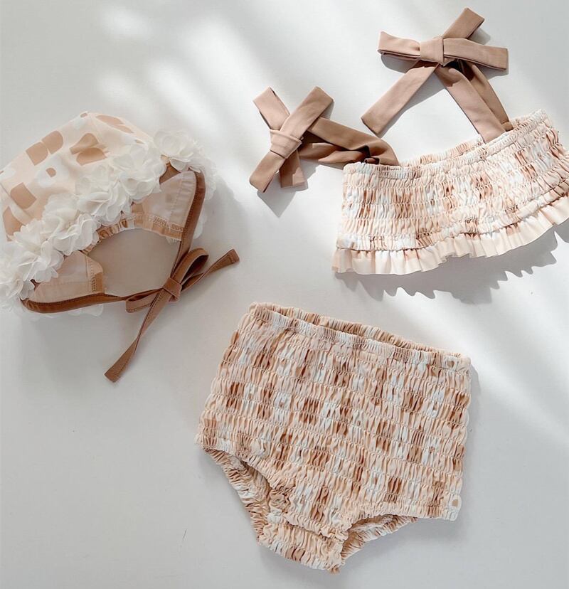 ins 韓国子供水着 セパレート水着 ボンネット付き 練習用 可愛い 幼児 女児 おしゃれ