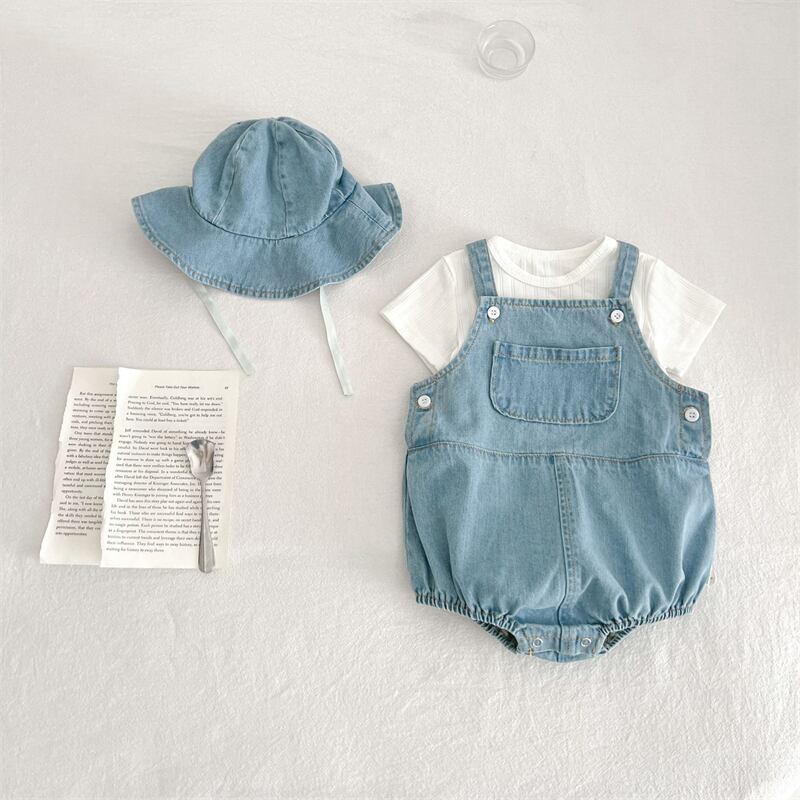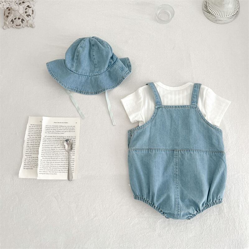 【海外からの取り寄せ】2023夏新作 ベビー服 デニム サロペット ロンパース カバーオール 帽子付き 子供服 可愛い #[ckd1091922_19000]【送料込み】【250312】