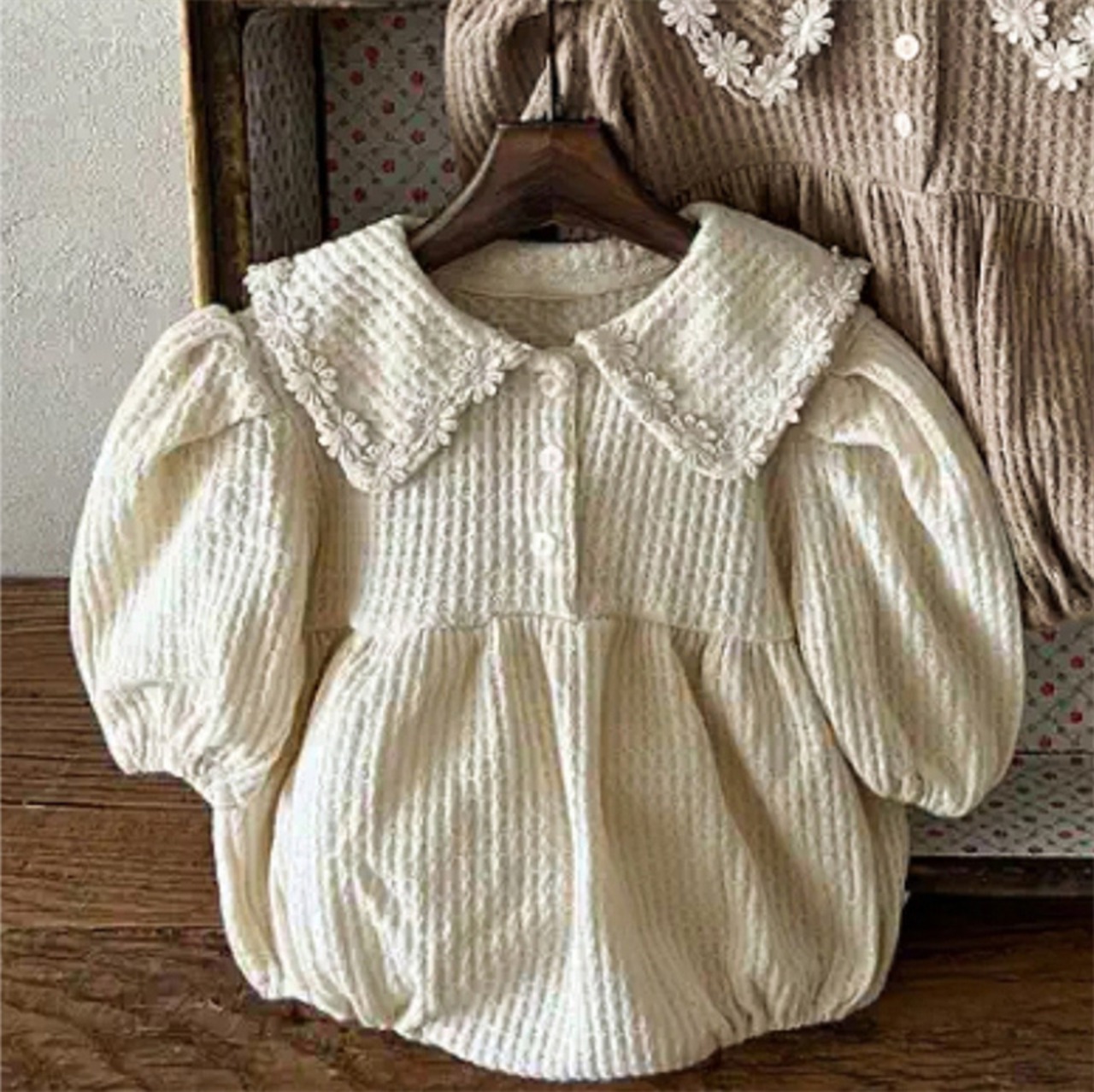 【海外からの取り寄せ】2025秋新作 ベビー服 女の子 ワッフル ロンパース 可愛い おしゃれ 柔らか 子供服 レース花柄 #[ckd1094284_21700]【送料込み】【250918】
