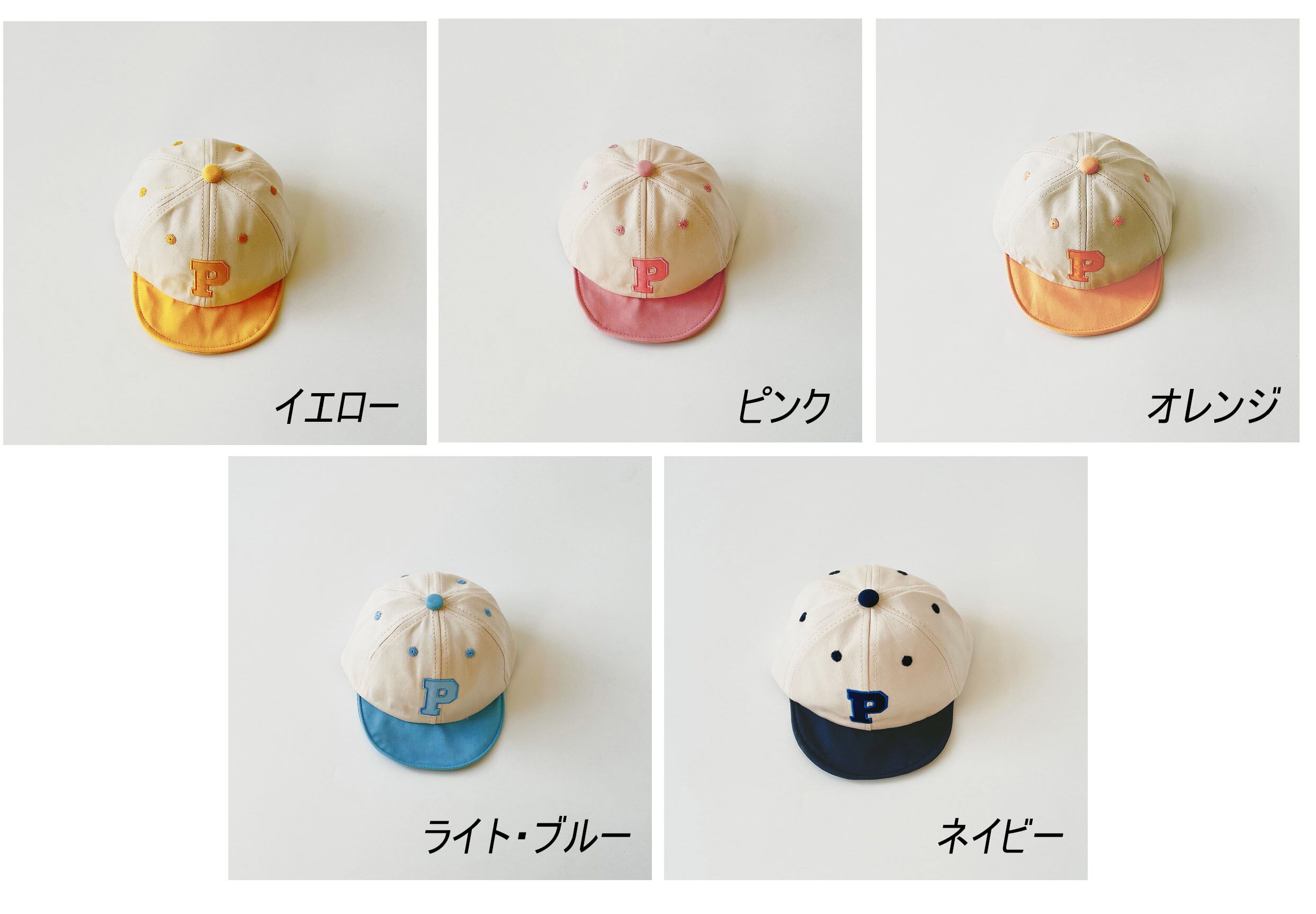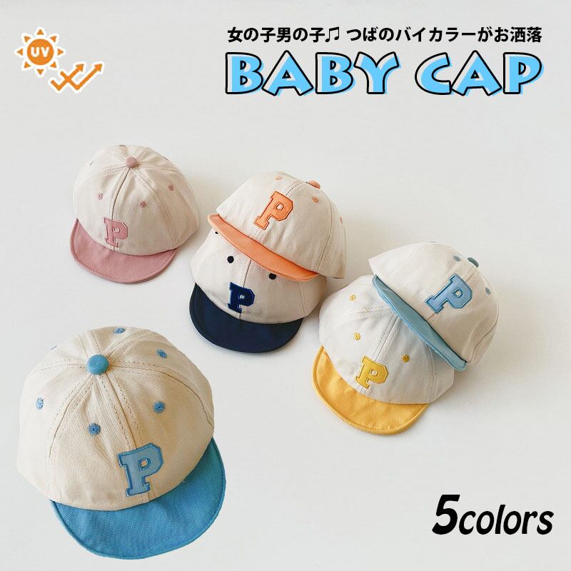 女の子男の子? つばのバイカラーがお洒落 ベビーキャップ