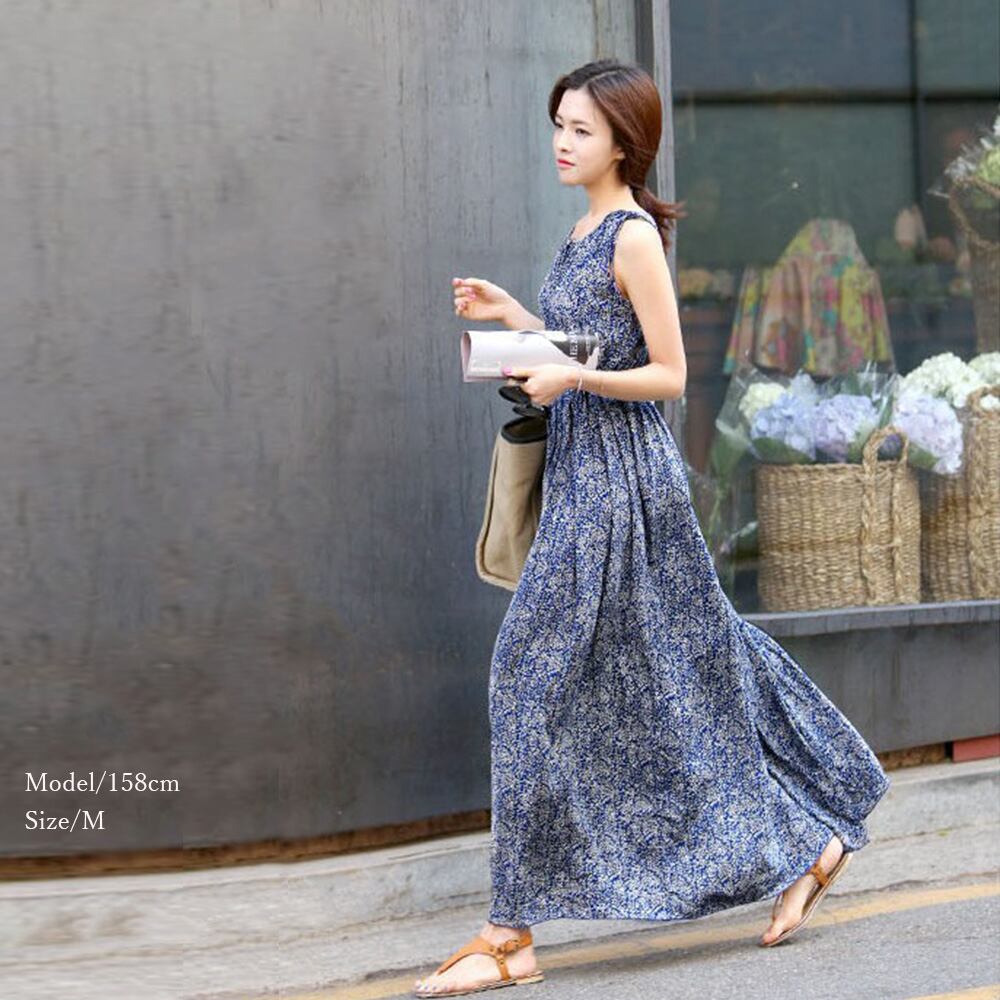 【日本倉庫からの発送】 ロングワンピース ノースリーブ レディース 花柄 マキシ丈ワンピース 薄手 #[89CXN-007_18100]【送料込み】【250722】