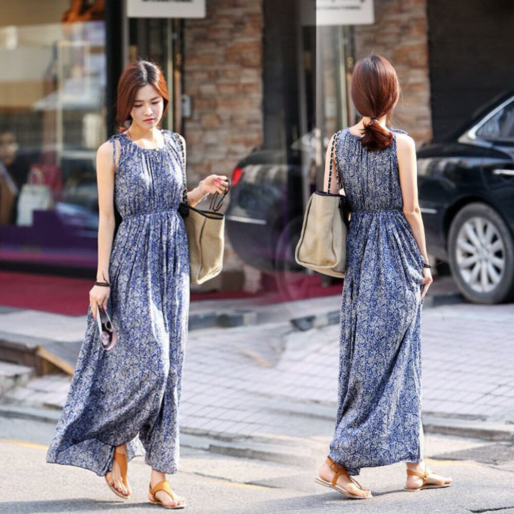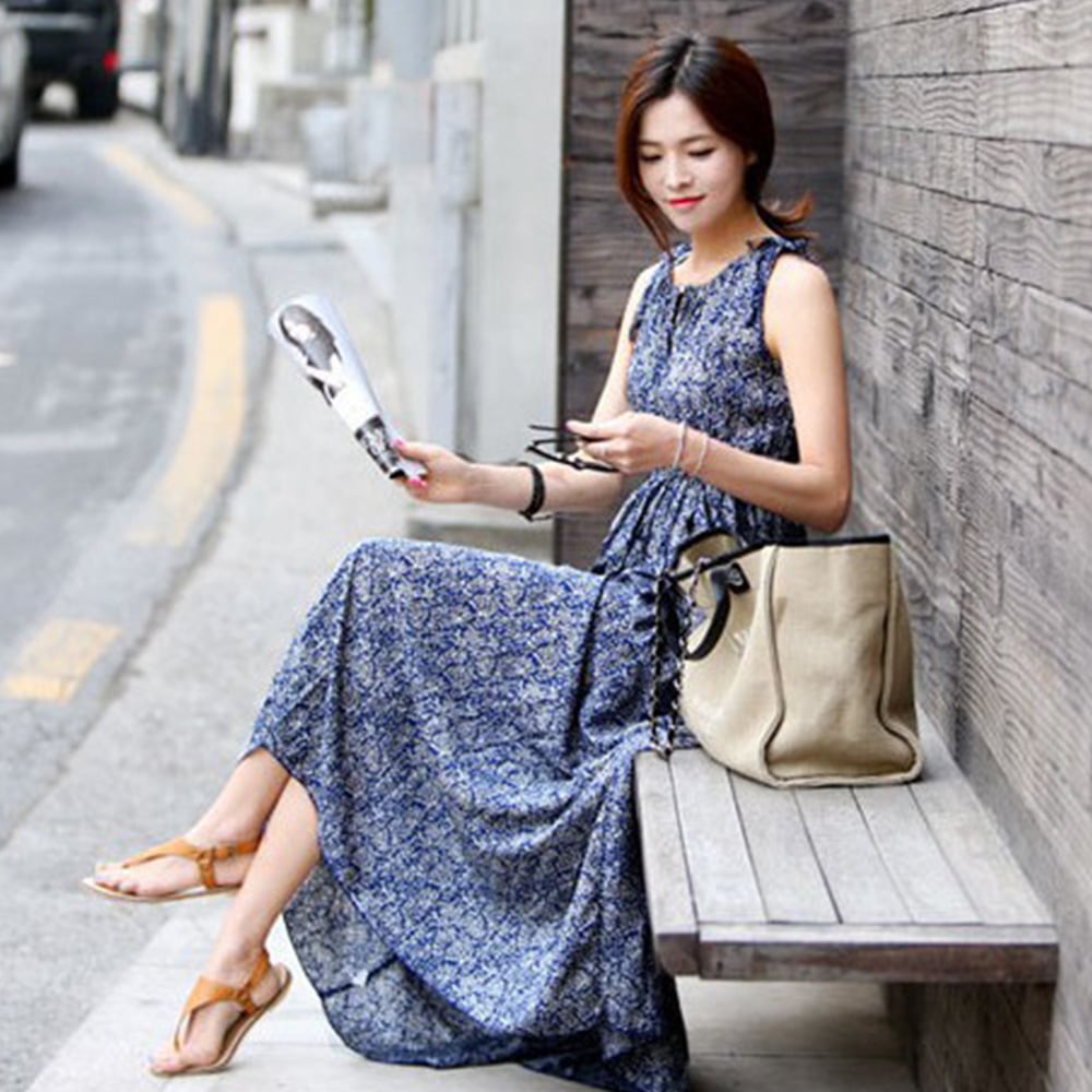 爽やかな夏らしい花柄ノースリーブワンピースはリゾートにぴったり