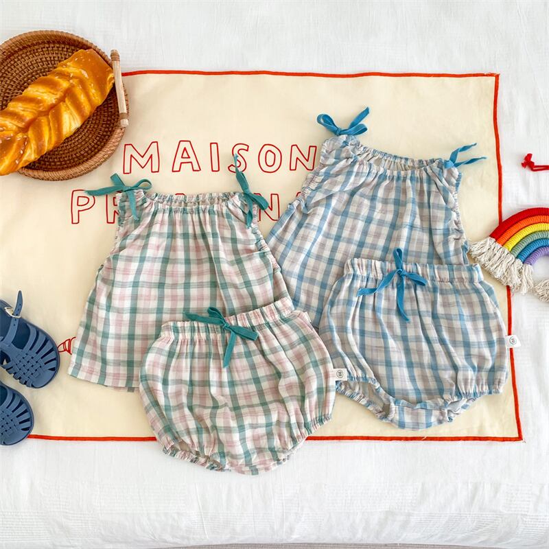 【海外からの取り寄せ】2025夏新作 ベビー服 チェック柄 セットアップ ベスト ブルマー おしゃれ 可愛い 格子 子供服 #[ckd1094466_13300]【送料込み】【250606】