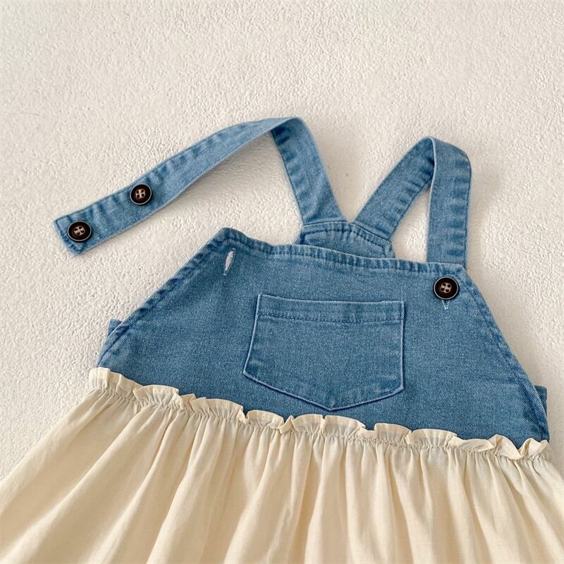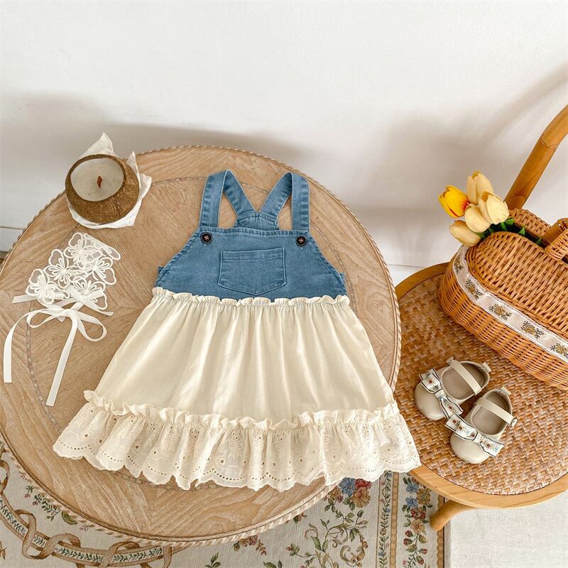 【海外からの取り寄せ】2025夏新作 子供服 女の子 デニム 切り替え ジャンパースカート ボトムス 可愛い レース スカート #[ckd1094461_18500]【送料込み】【250524】