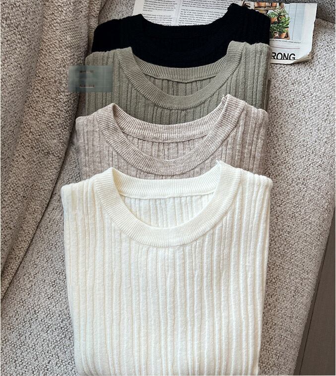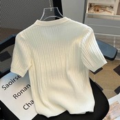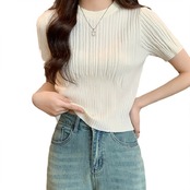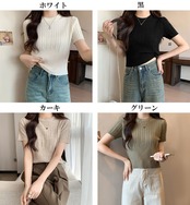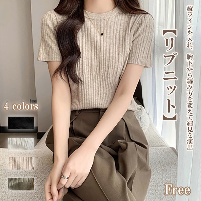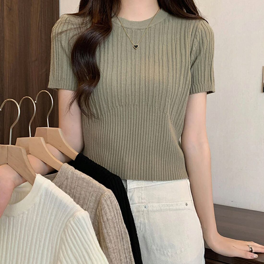 【海外からの取り寄せ】 2025新作 レディース クルーネック リブニット 半袖 サマーニット トップス クロップド丈 #[tops593_7800]【送料込み】【250712】
