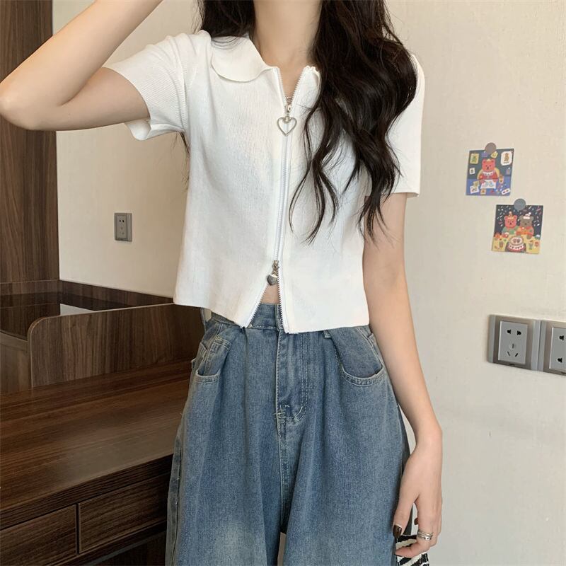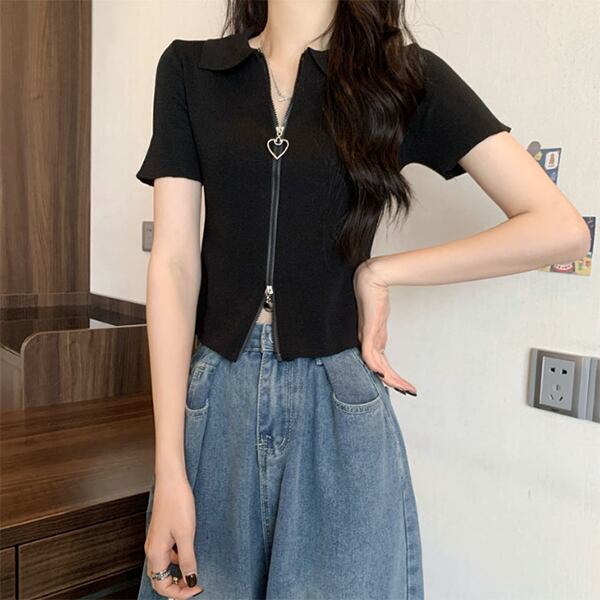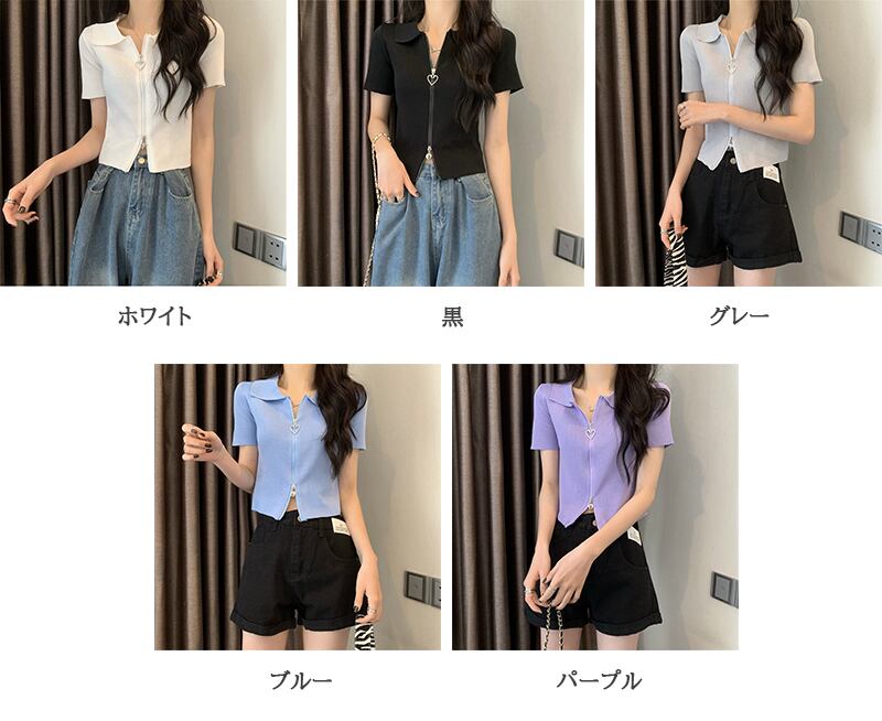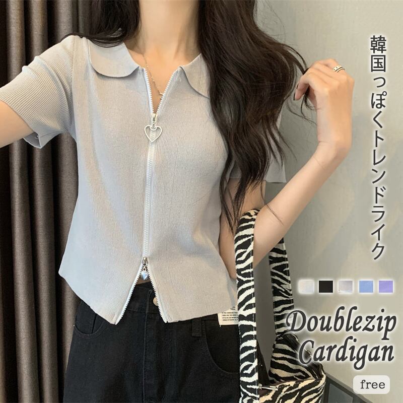 【海外からの取り寄せ】 2025新作 レディース ジップアップ カーディガン 半袖 ダブルジップ トップス ハートジップ #[cardigan191_9800]【送料込み】【250712】