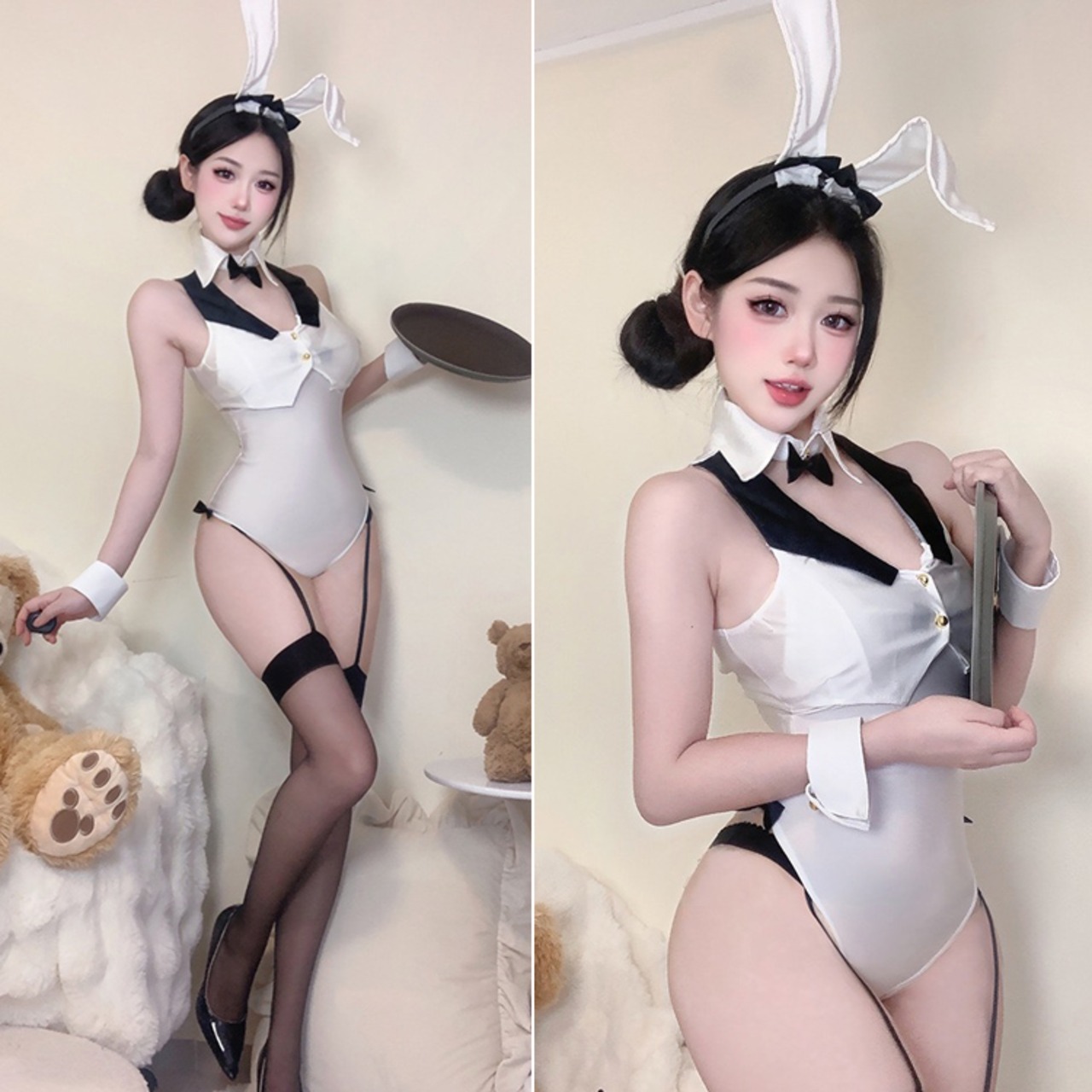 耳カチューシャ、襟、ボレロ、レオタード、カフス、しっぼ、透明ストラップ