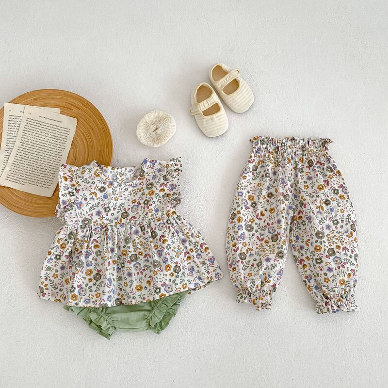 【海外からの取り寄せ】2023夏新作 ベビー服 女の子 花柄 半袖Tシャツ ショートパンツ セットアップ 森ガール 可愛い #[ckd1091946_18300]【送料込み】【250517】