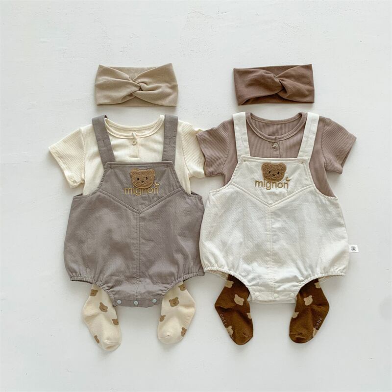【海外からの取り寄せ】ins 夏新作 ベビー服 セットアップ 半袖シャツ クマ サロペットロンパース 子供服 可愛い #[ckd1094481_18600]【送料込み】【250517】