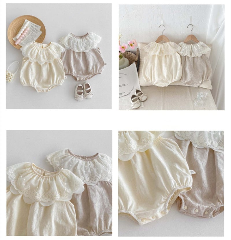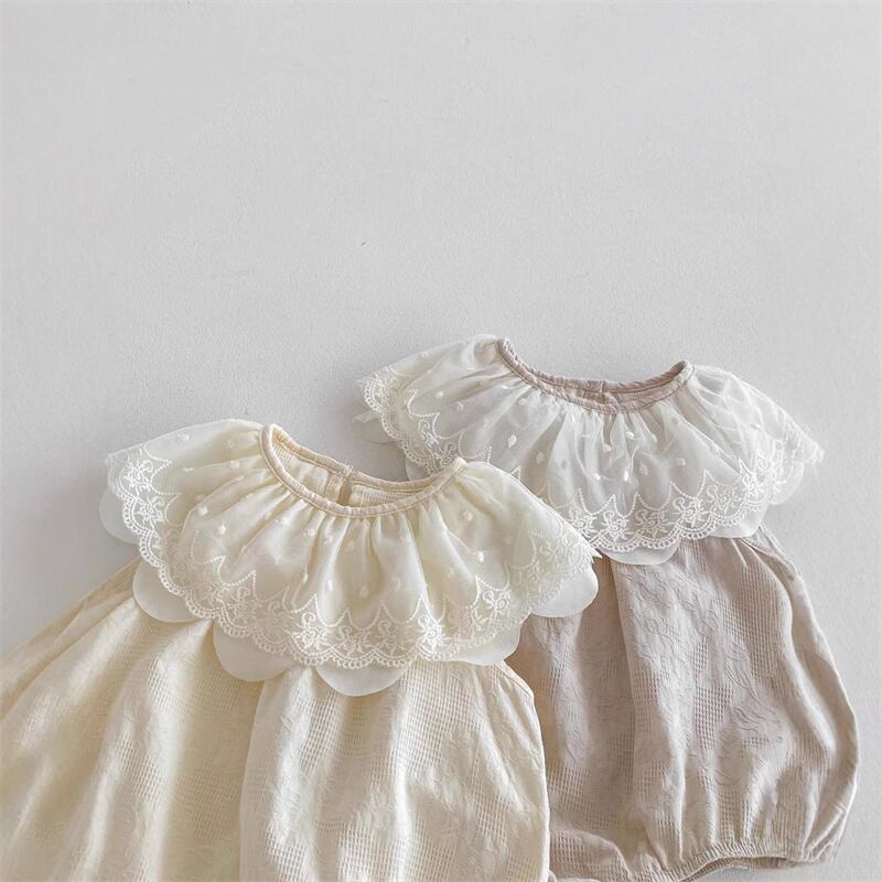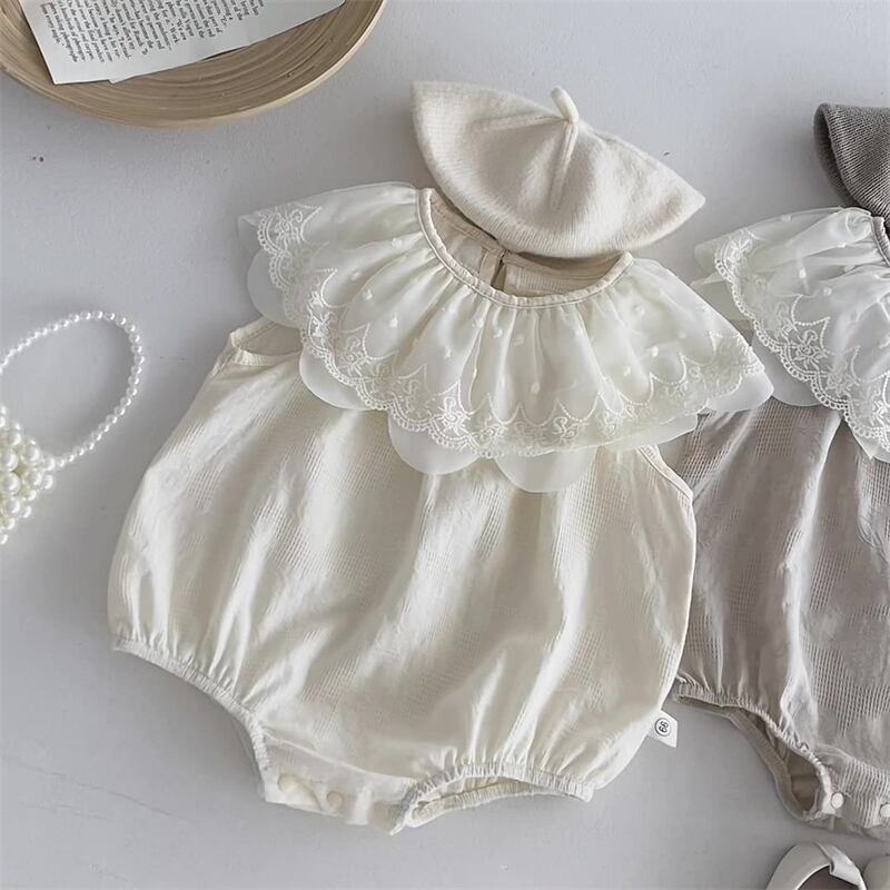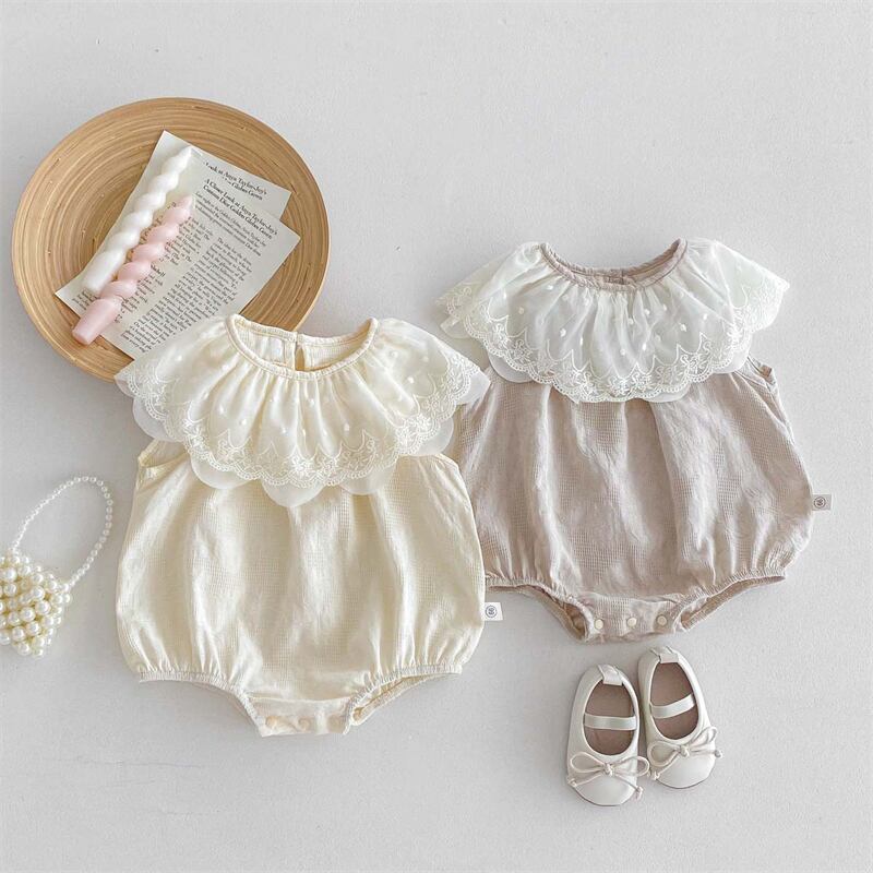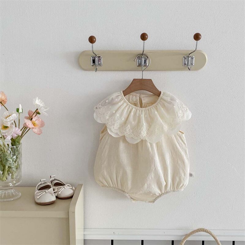 【海外からの取り寄せ】2025夏新作 ベビー服 女の子 レース ラッフルカラー ロンパース ノースリーブ カバーオール 子供服 #[ckd1094480_14000]【送料込み】【250422】