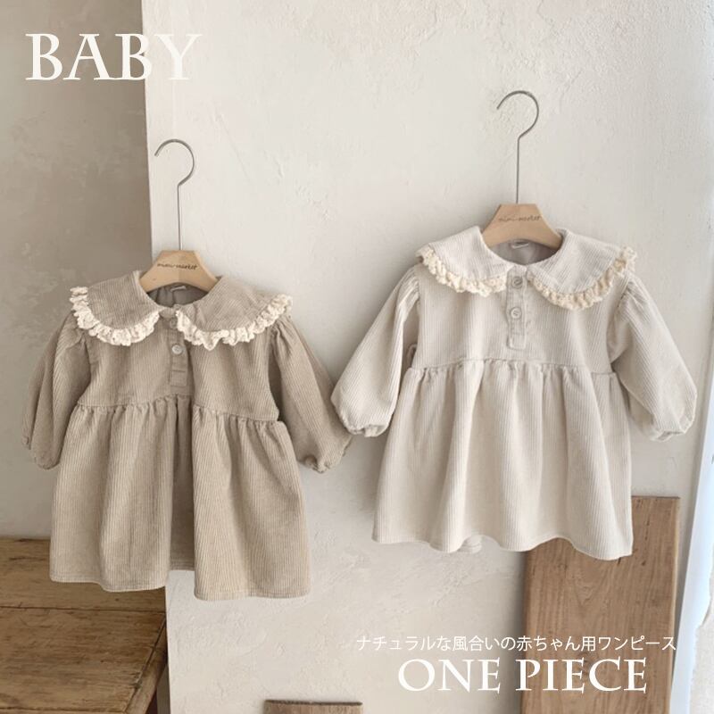 ・ナチュラルな風合いのベビーワンピース。
