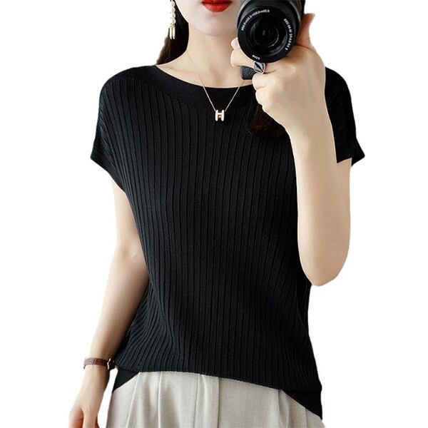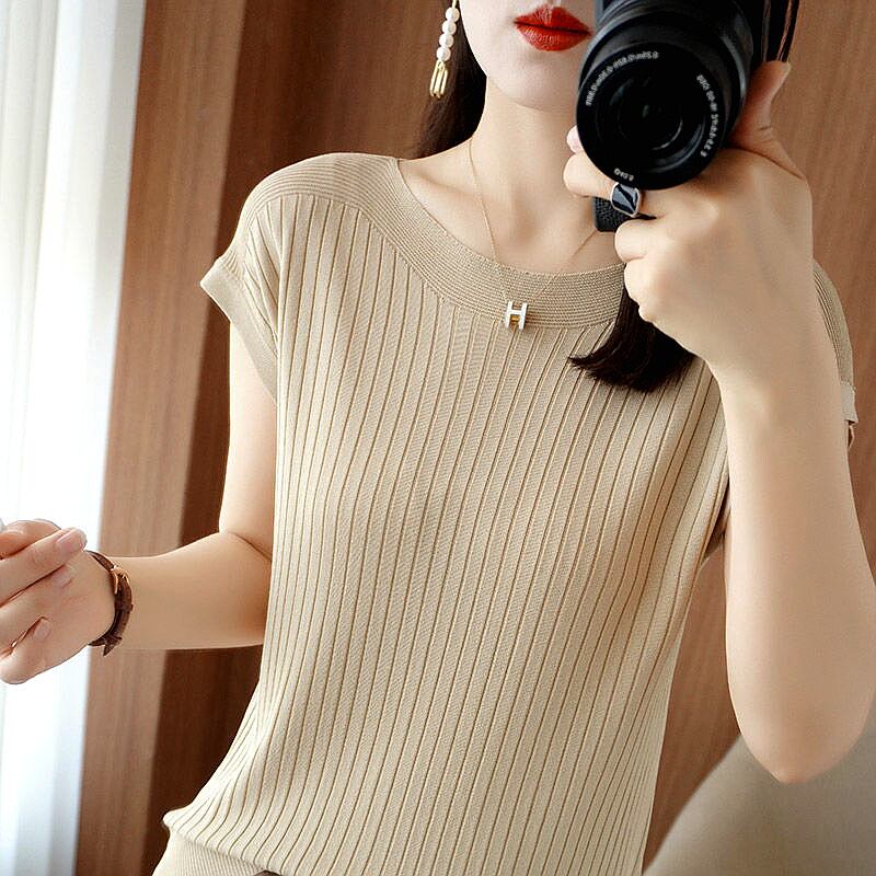 【海外からの取り寄せ】 2025新作 レディース クールネック リブニット フレンチスリーブ トップス 上品 エレガント #[shirt468_9800]【送料込み】【250712】